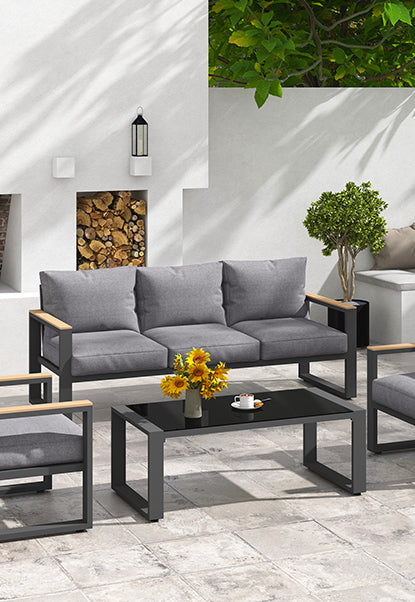 sunvivicollection Metal Outdoor furniture set, All-Weather Metal Patio 3-seat Sofa with Coffee table, Patio Sofa set for Porch Backyard Garden