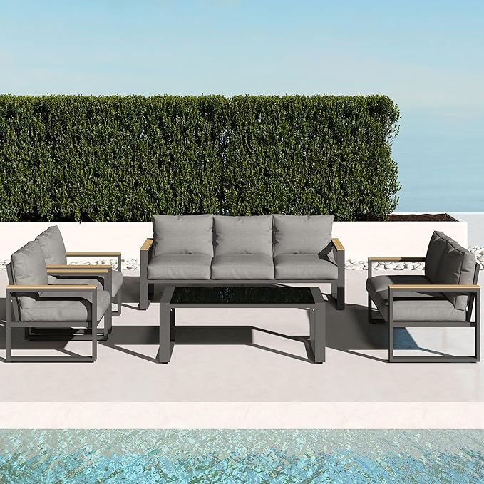 sunvivicollection Patio Furniture Set with Cushions, PE Wicker Outdoor Conversation Set Outdoor Sectional Sofa for Garden, Beach, Balcony and Poolside, Aluminum Frame