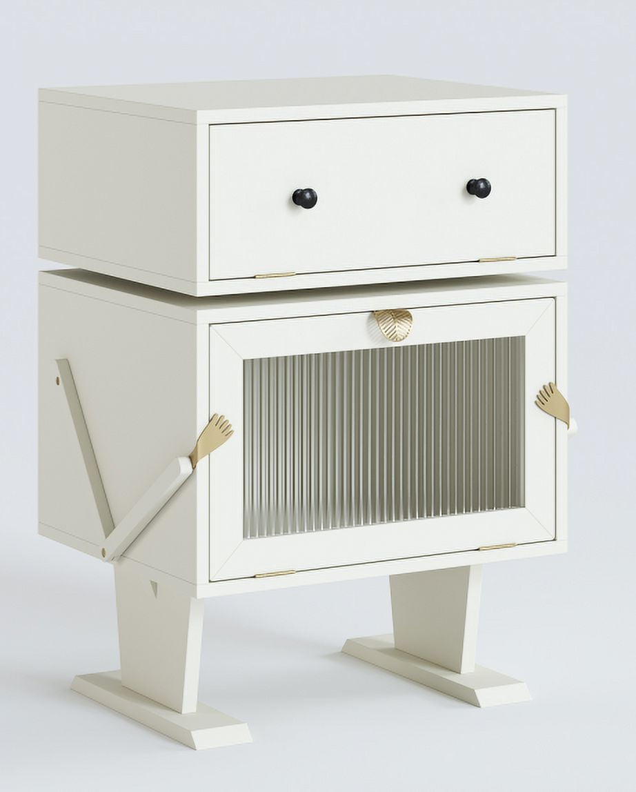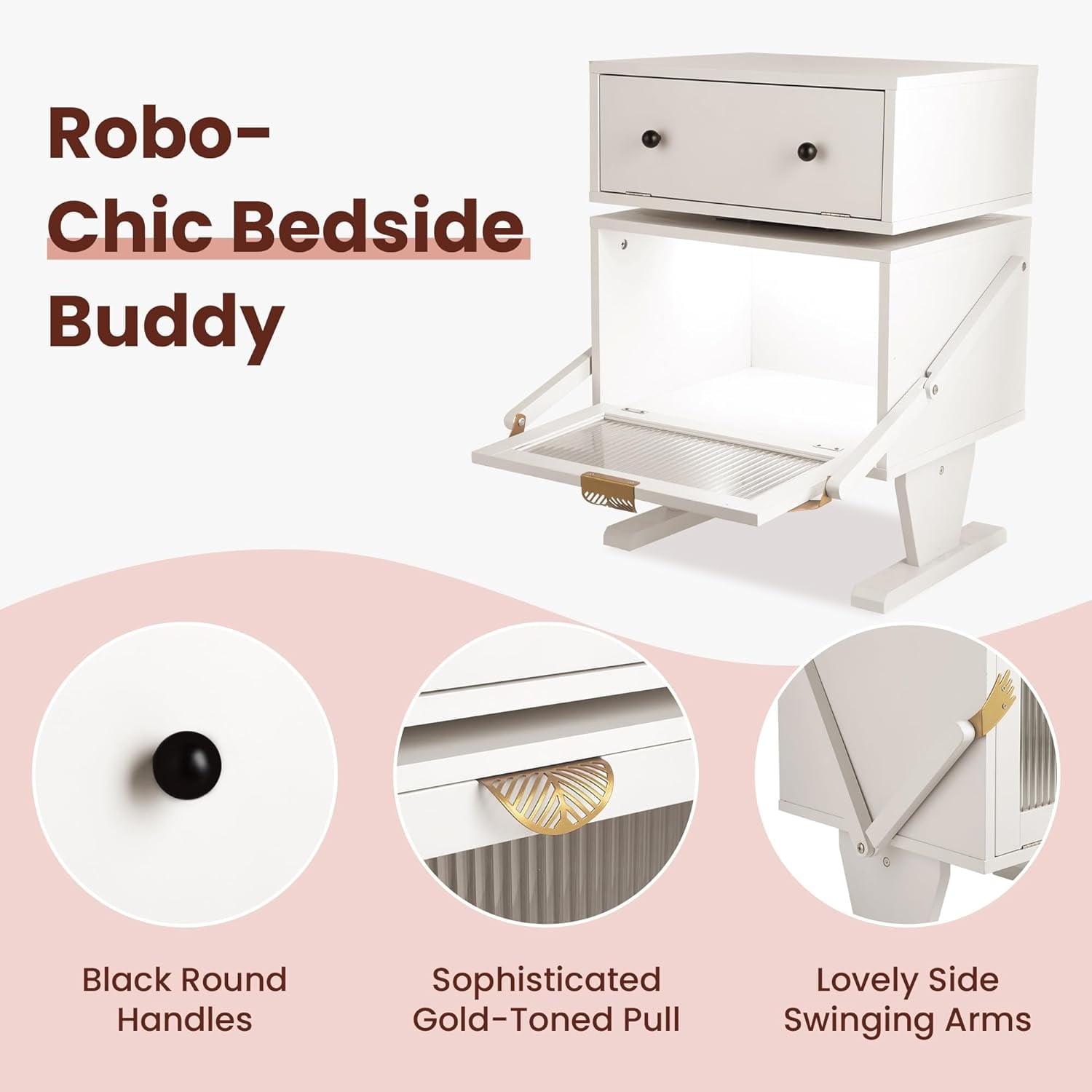 - 【Adorable Robot Design】Boasting a playful outlook, the led nightstand flaunts a rotating head and swinging arms, adding charm to your home. This versatile piece effortlessly transitions as a bedside table, sofa-side companion, or storage solution for your nursery or study.