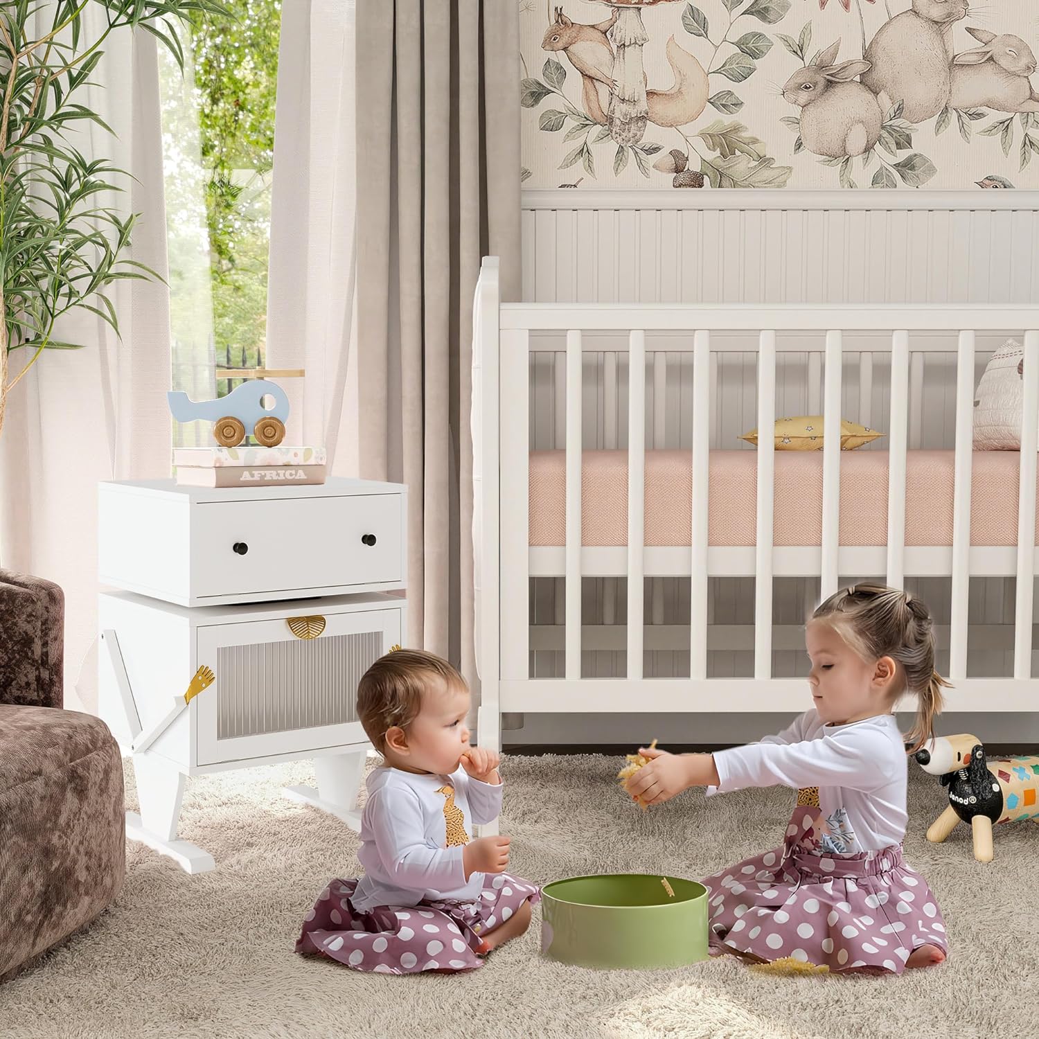 - 【360° Rotating Drawer & Ample Storage】360° silent rotating top drawer for easy bi-directional access. The spacious lower drawer features a smooth metal-hinged door that opens effortlessly. Additionally, the pull-down design enhances safety, especially for children.