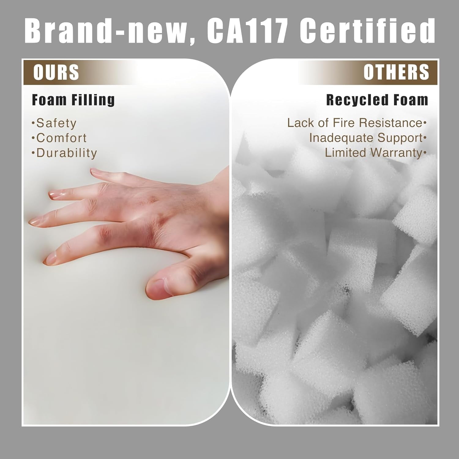 - New Foam & P2 Grade MDF Construction: Our premium footrest features high-grade new foam, surpassing alternatives with recycled foam cuts. The robust P2 MDF frame ensures lasting durability, while the velvet upholstery and stainless steel base add sophistication