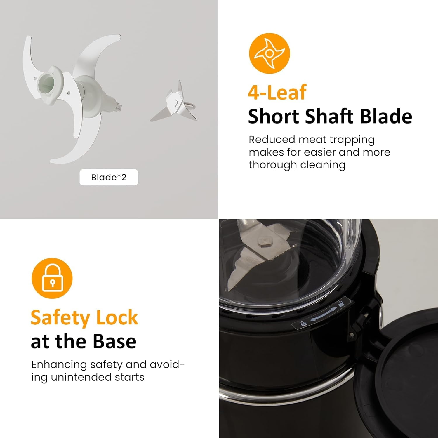 ?- ¡¾4 in 1 Food Chopper¡¿-This all-in-one appliance combines meat grinding, milling, juicing, and garlic peeling, making it ideal for vegetables, meats, coffee beans, fruits, and more. It replaces multiple single-purpose tools, saving time, space, and money while boosting convenience and efficiency.