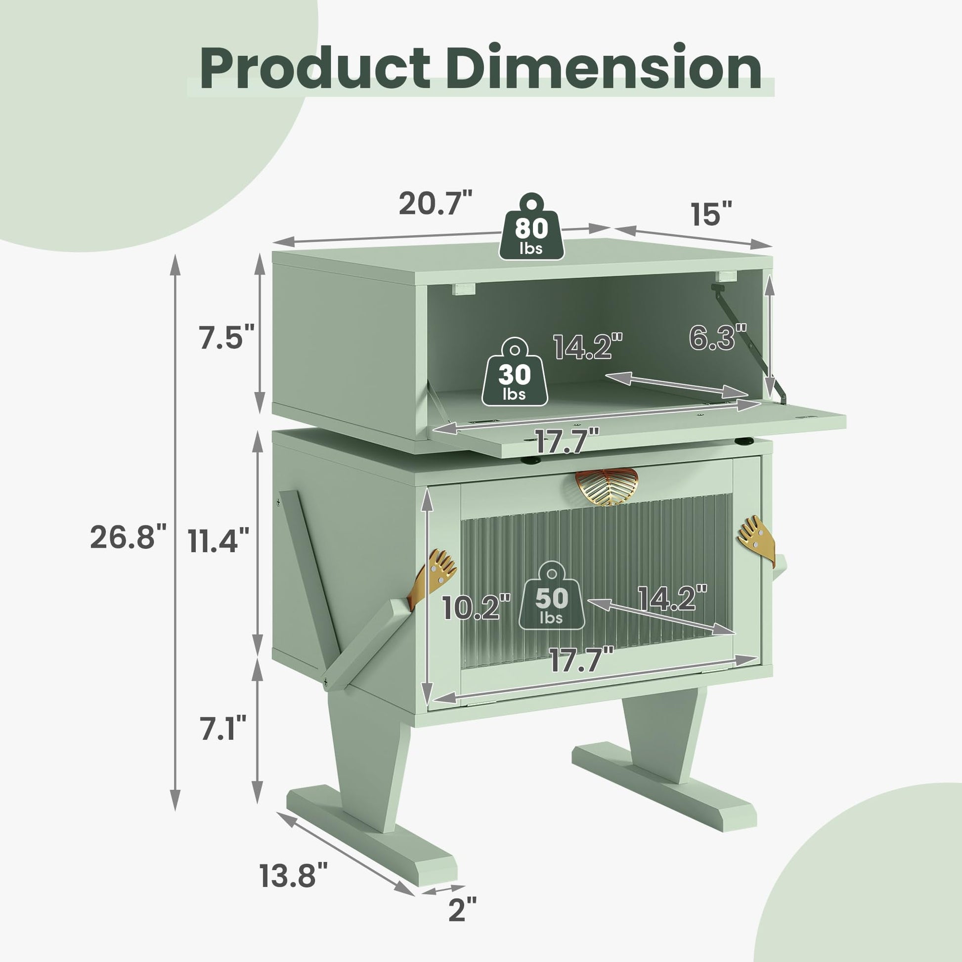 - 【Eco-friendly Spray Paint】Our white night stand is made of sturdy p2 certified MDF with eco-friendly paint for safety and durability. The painted panel has passed the ASTM test, it is environmentally friendly and non-toxic to ensure the health of you and your family. Meanwhile, the wood is waterproof and easy to clean. A reinforced glass door provides added robustness and resistance to breakage.