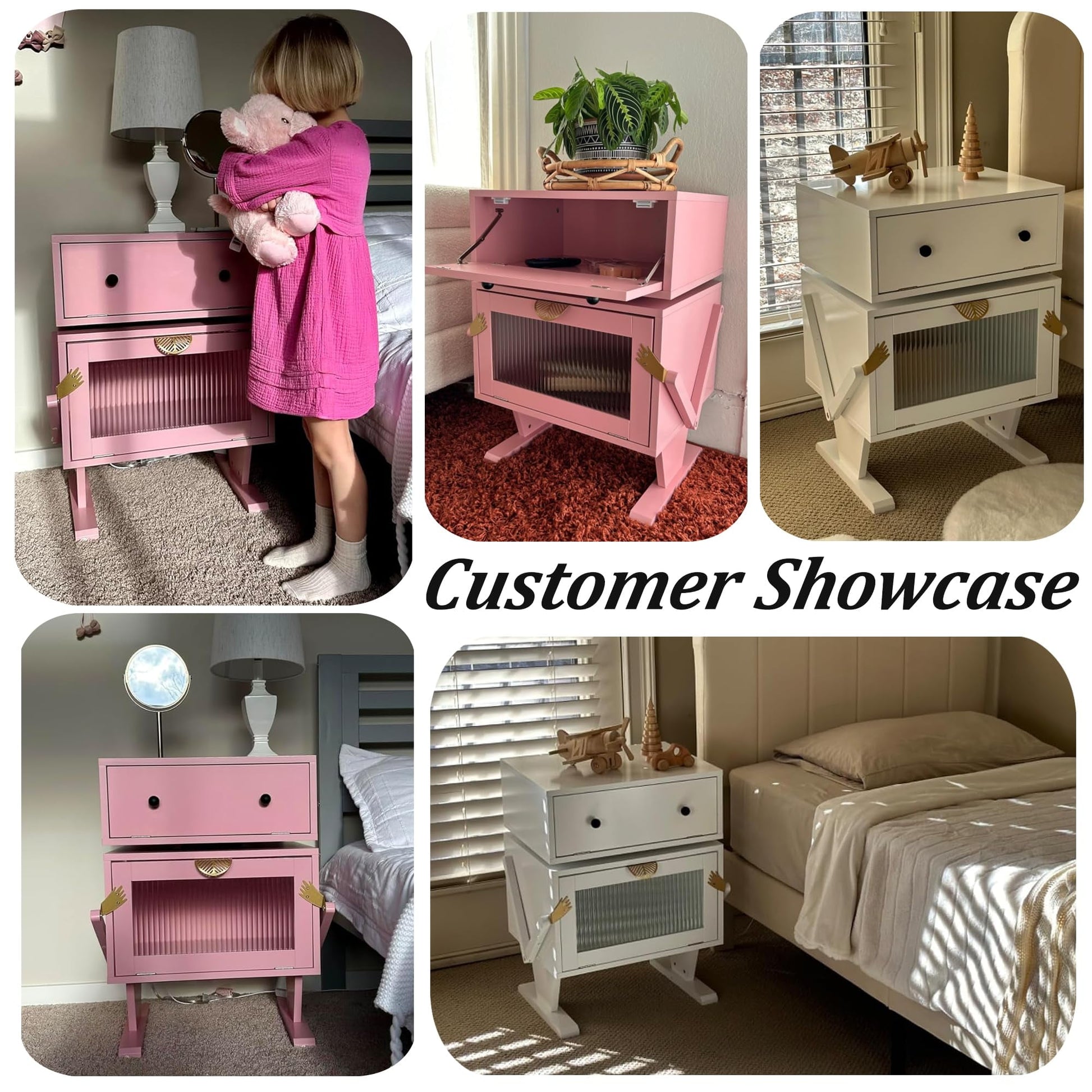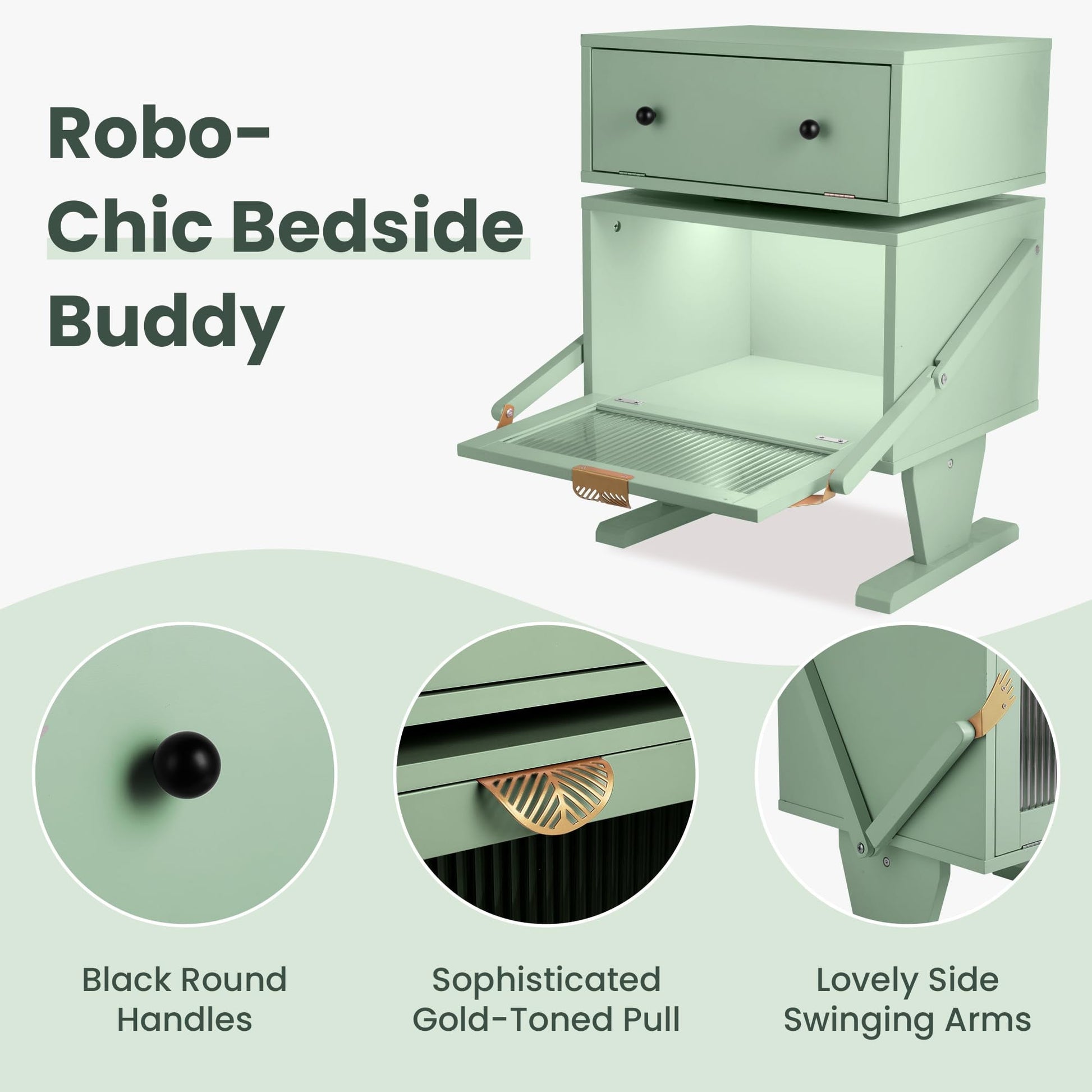 - 【Adorable Robot Design】Boasting a playful outlook, the led nightstand flaunts a rotating head and swinging arms, adding charm to your home. This versatile piece effortlessly transitions as a bedside table, sofa-side companion, or storage solution for your nursery or study.