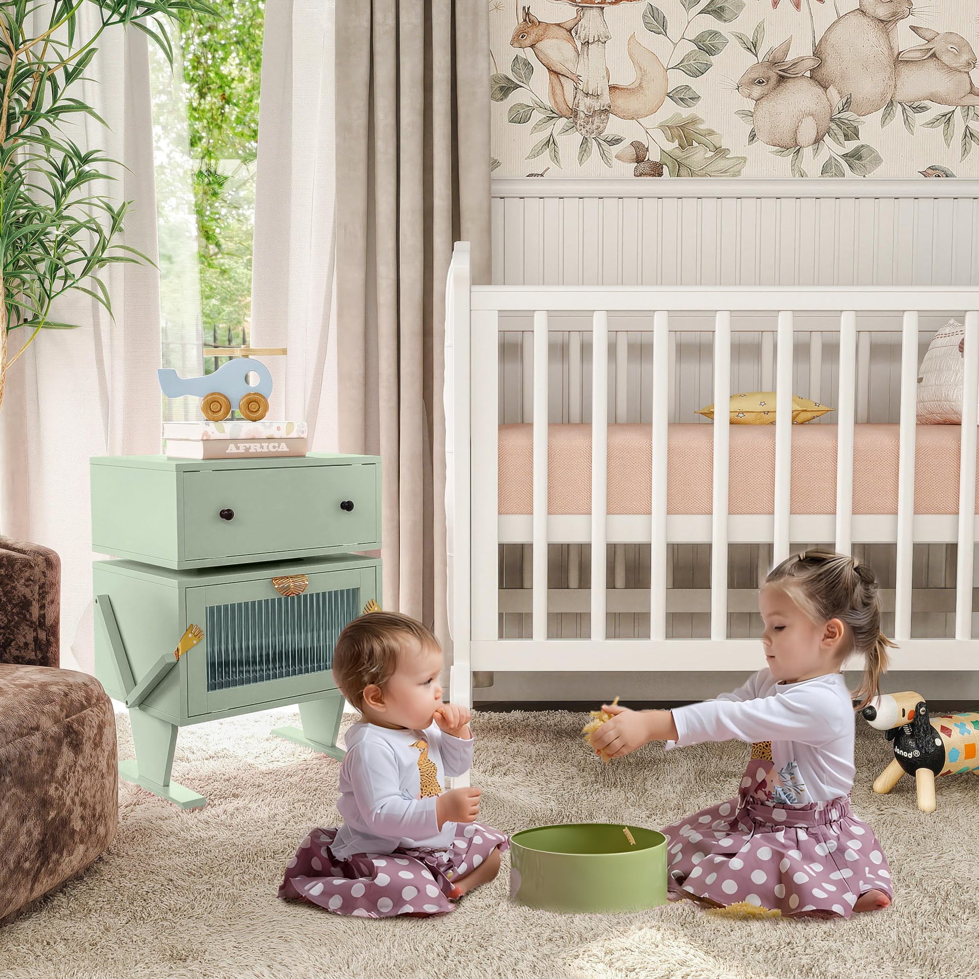 - 【360° Rotating Drawer & Ample Storage】360° silent rotating top drawer for easy bi-directional access. The spacious lower drawer features a smooth metal-hinged door that opens effortlessly. Additionally, the pull-down design enhances safety, especially for children.