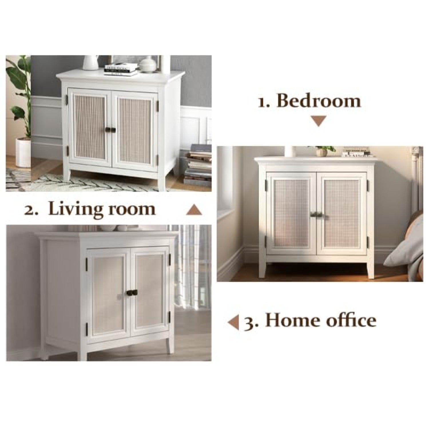 CozyHome Storage Cabinet, Kitchen Sideboard Cabinet with Rattan Decor Doors, Accent Buffet Cabinet with Adjustable Storage Shelf, Wood Cabinet Organizer for Hallway, Dining Room, Living Room, White