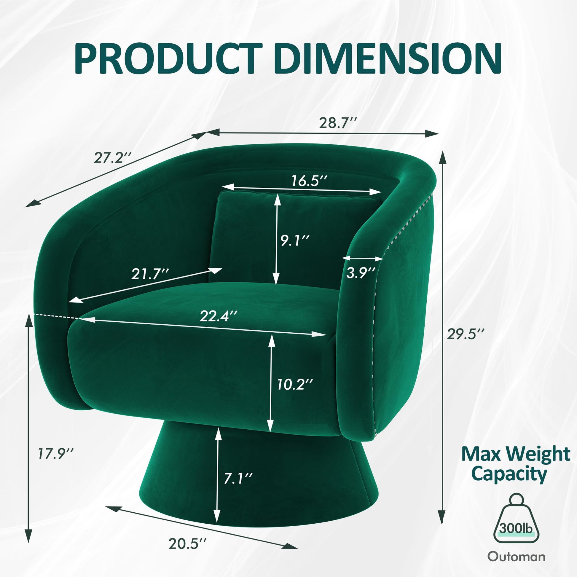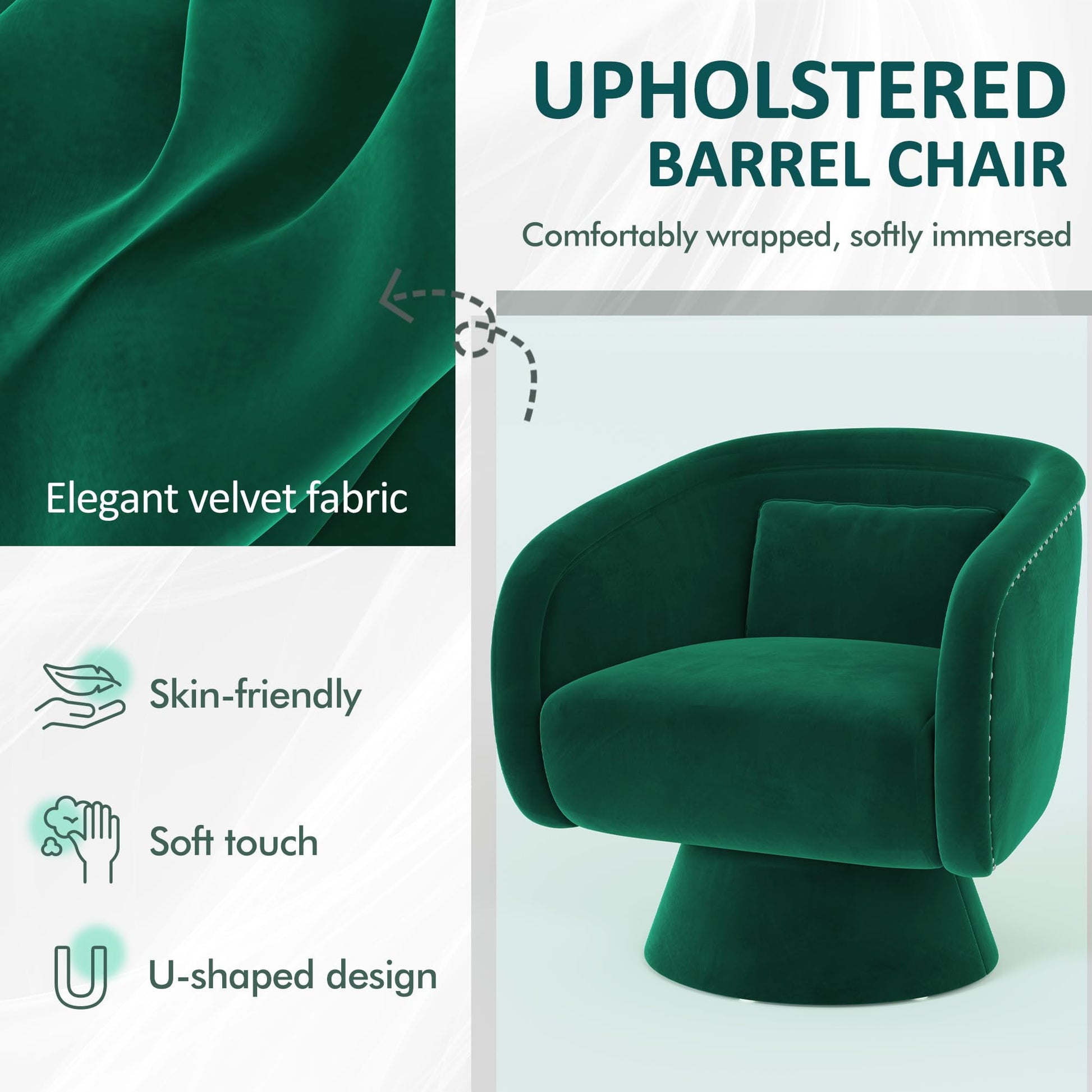 - Exquisite Design:This swivel accent chair features a classic barrel-shaped backrest, curved armrests, and a tapered base, showcasing intricate craftsmanship. The rivet detailing and retro color enhance its allure, adding a touch of luxury to any decor. Ergonomically designed, it provides excellent support and comfort.