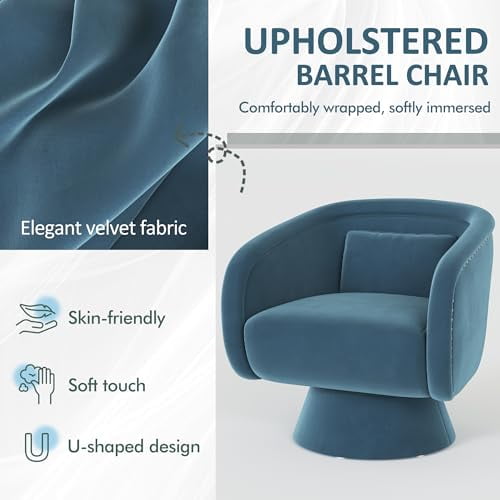 - Exquisite Design:This swivel accent chair features a classic barrel-shaped backrest, curved armrests, and a tapered base, showcasing intricate craftsmanship. The rivet detailing and retro color enhance its allure, adding a touch of luxury to any decor. Ergonomically designed, it provides excellent support and comfort.
