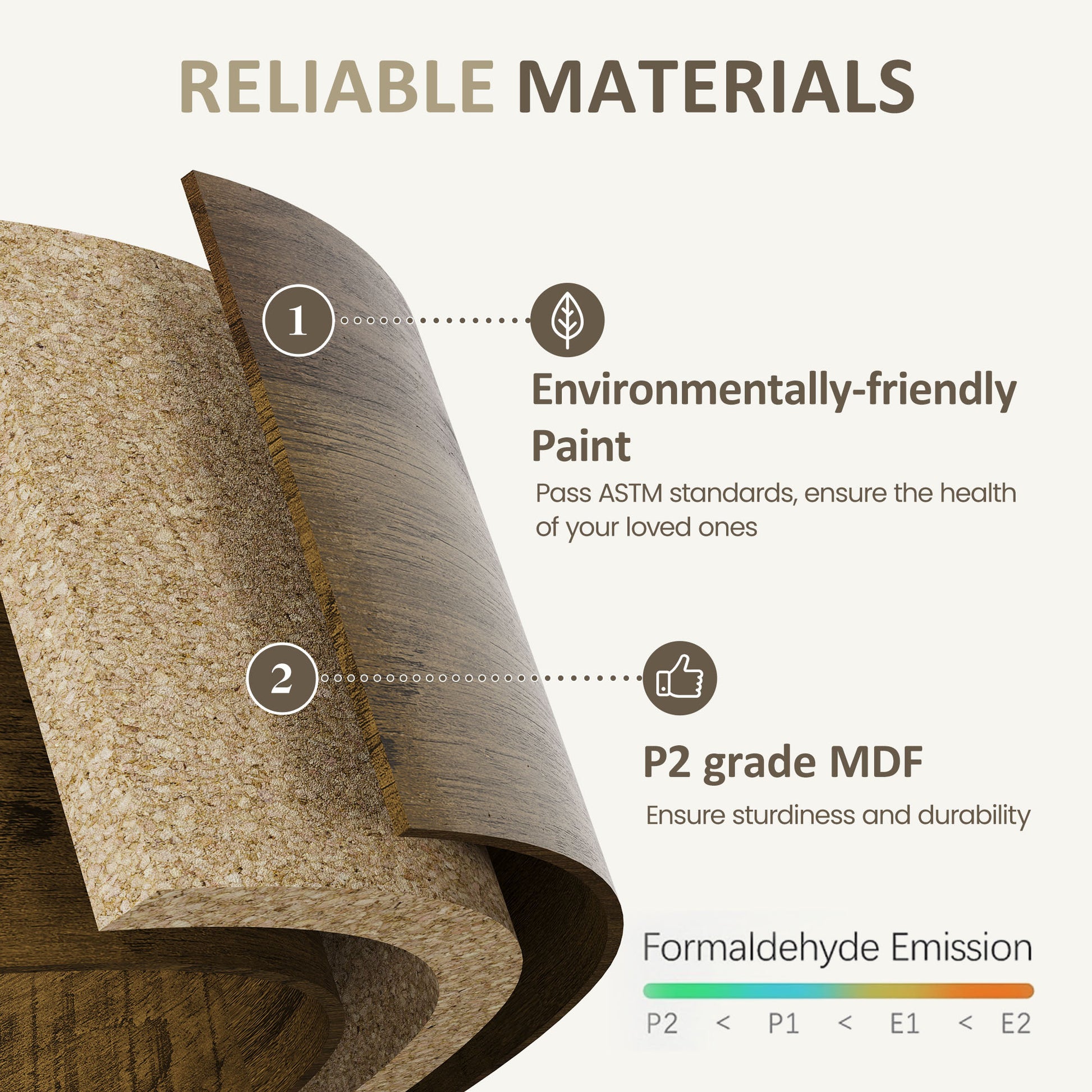 Material: P2 Grade Particle Board, Melamine Faced Board, Metal;