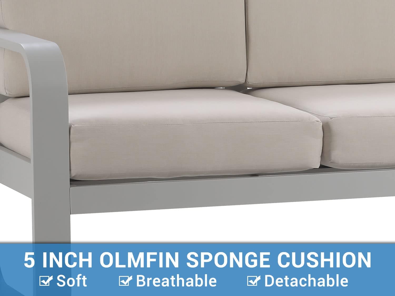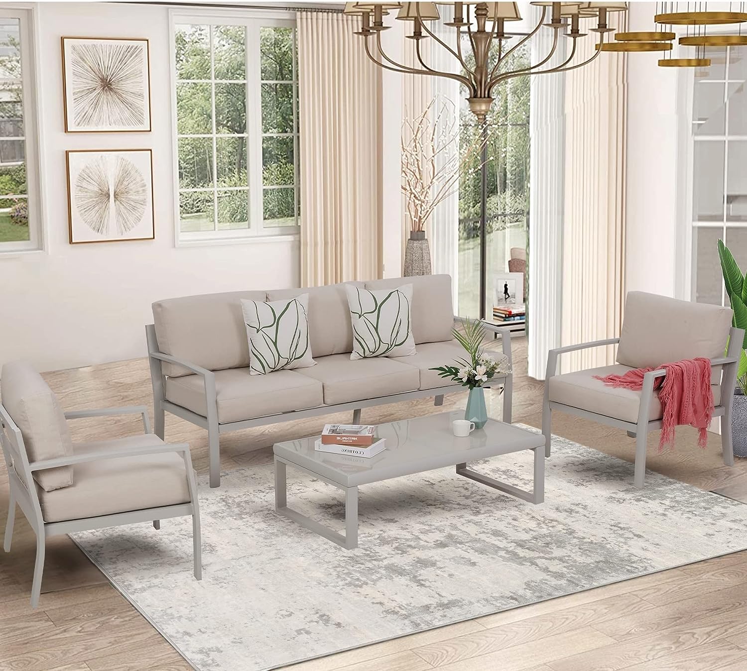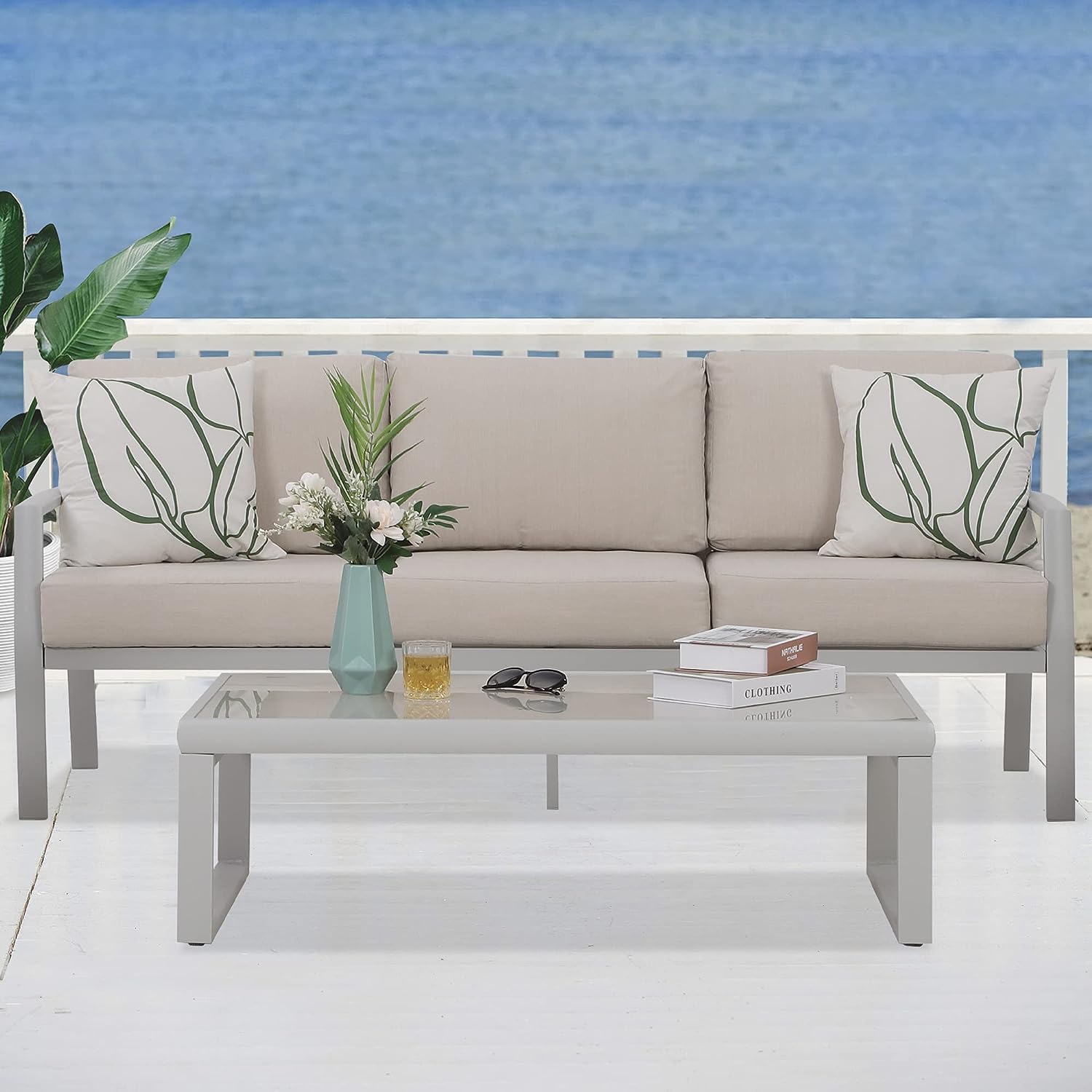 SunviviCollection Aluminum Patio Furniture, Outdoor Metal Patio Furniture Conversation Set with Coffee Table, Outside Patio Sofa Sets with Cushion for Balcony Backyard Garden, Beige