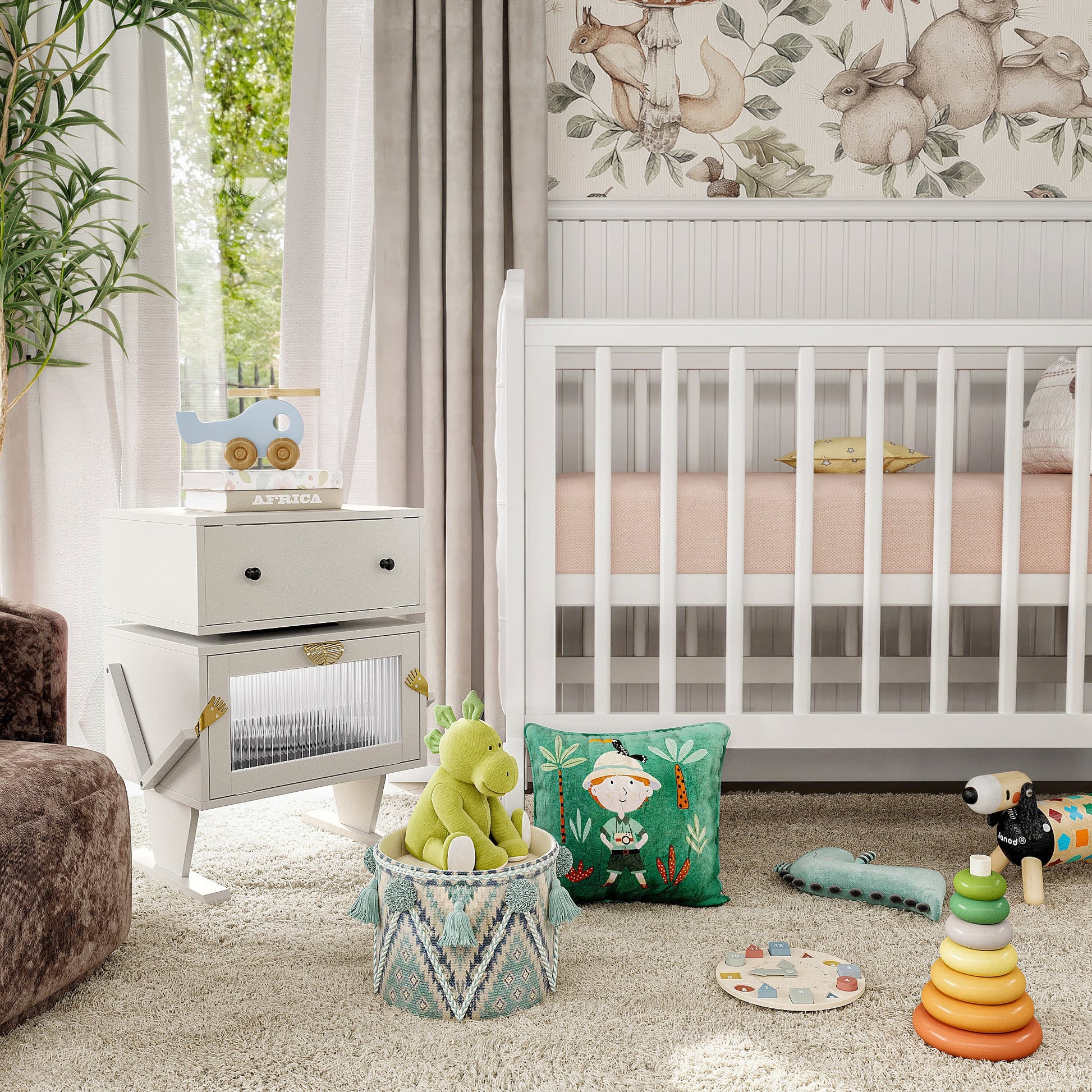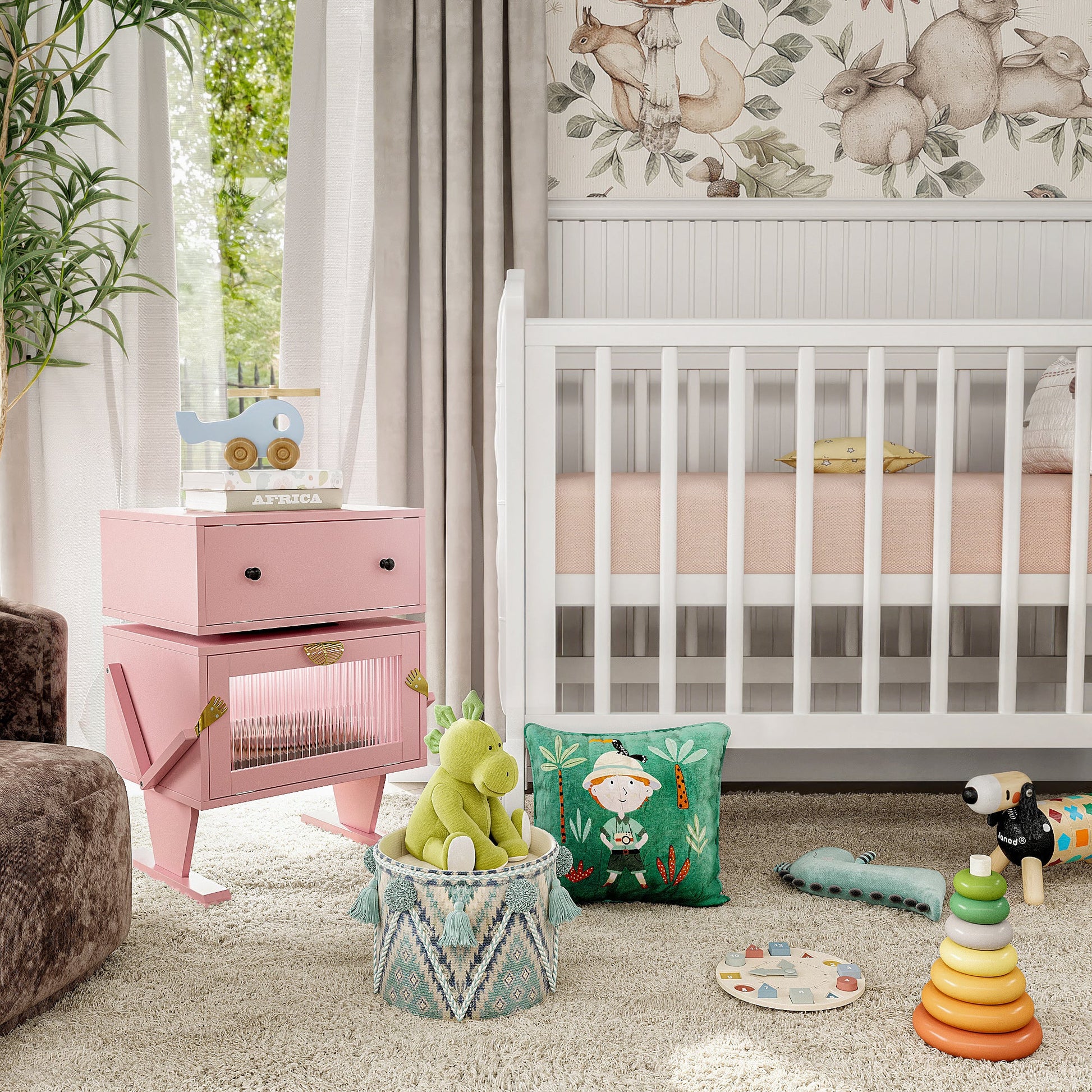 Playful Robot Nightstand- Adorable design with a rotating head and swinging arms adds charm. This versatile furniture works as a bedside table, sofa-side companion, or storage cabinet for nursery.