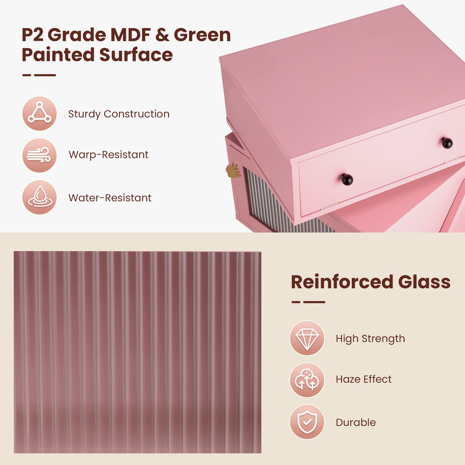 Sturdy Material- P2-grade MDF ensures durability, while eco-friendly paint enhances safety. The reinforced glass door adds robustness, resisting breakage.