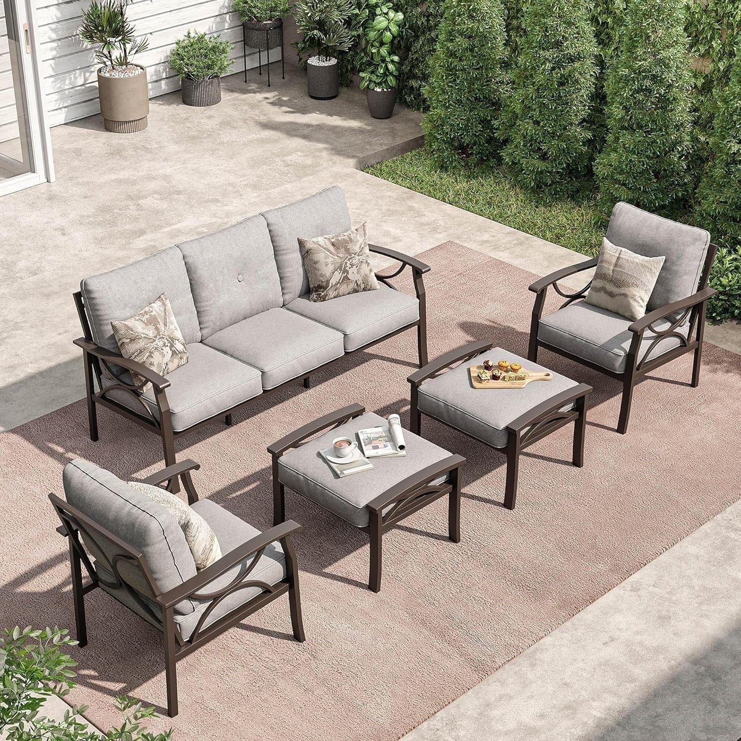 - Easy Assembly: This patio conversation set includes 2 armchairs, 1 sofa, 2 ottomans, and cushions. With clear instructions and necessary hardware, our furniture is a breeze to set up. Enjoy your stylish and comfortable outdoor seating in no time!