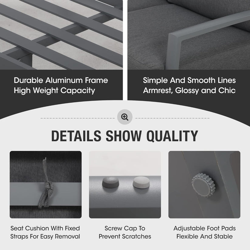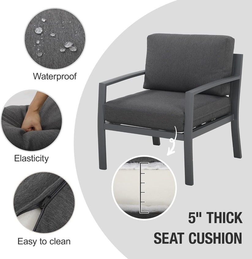 - GENEROUSLY SIZED- Put your ice-cold drink on the wide armrests and slip into the deep-seated comfort for a while in this aluminum patio furniture! Built from an aluminum-reinforced frame and treated to be exceptionally resistant to UV, rust and water, it’ll withstand nearly any weather. Despite its lightweight feel, our aluminum outdoor furniture has incredibly strong construction and a large load bearing.