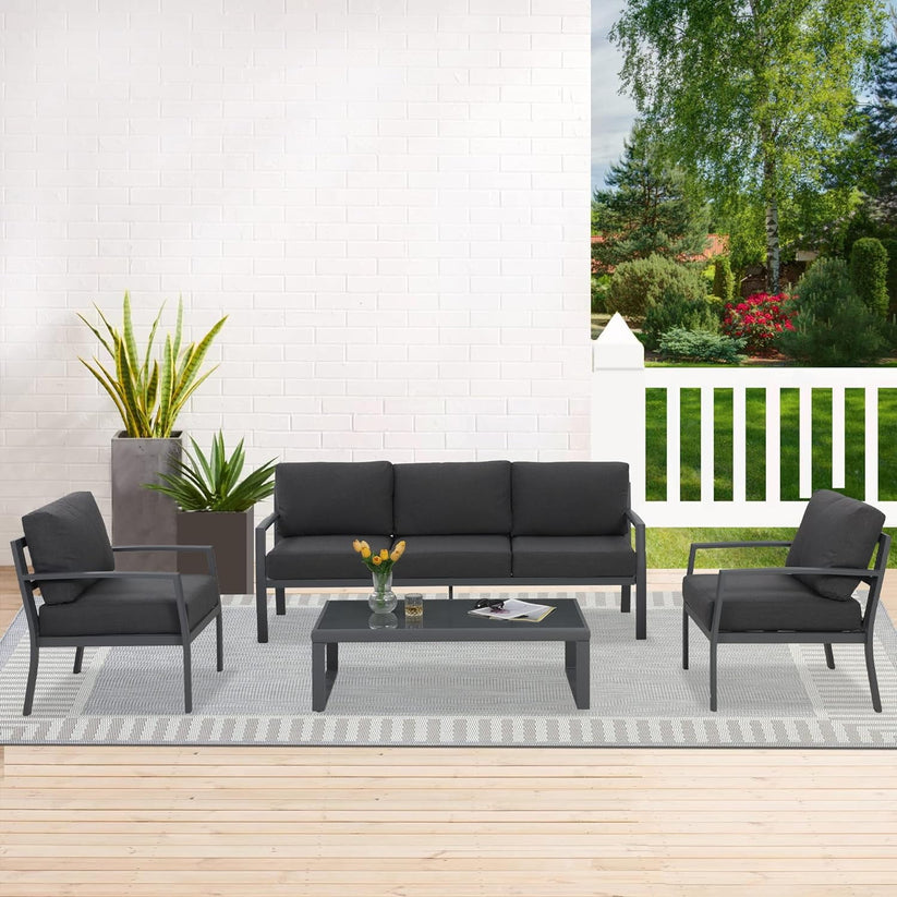 - VERSATILE DESIGN- This modern outdoor furniture features a sectional design that can break into 2 armchairs, a 3-seat sofa couch, and a coffee table, so there’s plenty of room for backyard barbecues, friend movie nights, and family get-togethers. You can easily recombine it to suit your places for the outside patio furniture will make a statement in all shapes and sizes.