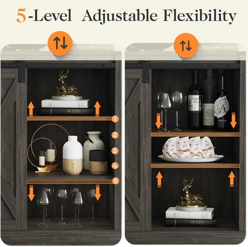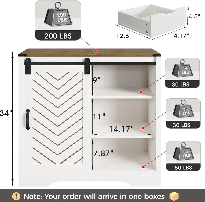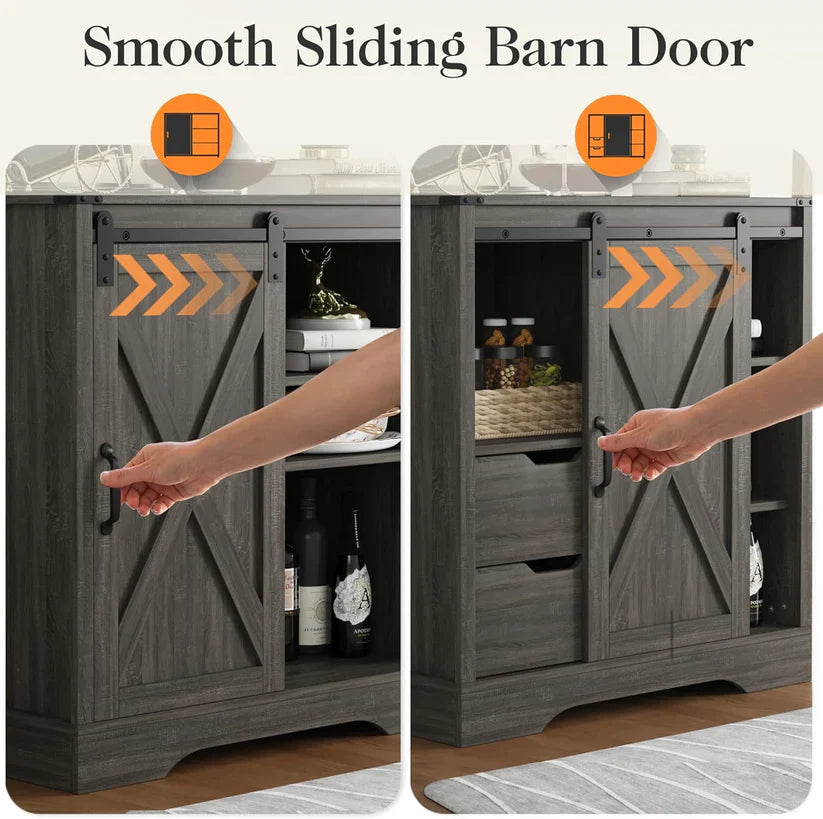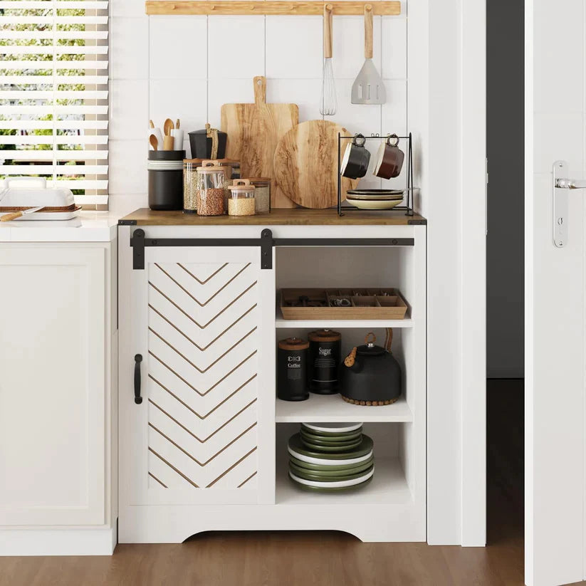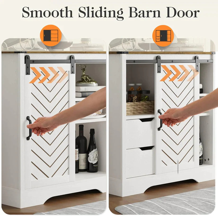 - I Know that Cozy Farmhouse Feel You Love: The mix of colors on the countertop and body, plus that herringbone pattern on the sliding doors. The buffet cabinet is a perfect fit for any spot ¨C whether it's the dining room, kitchen, hallway, or even the bathroom!