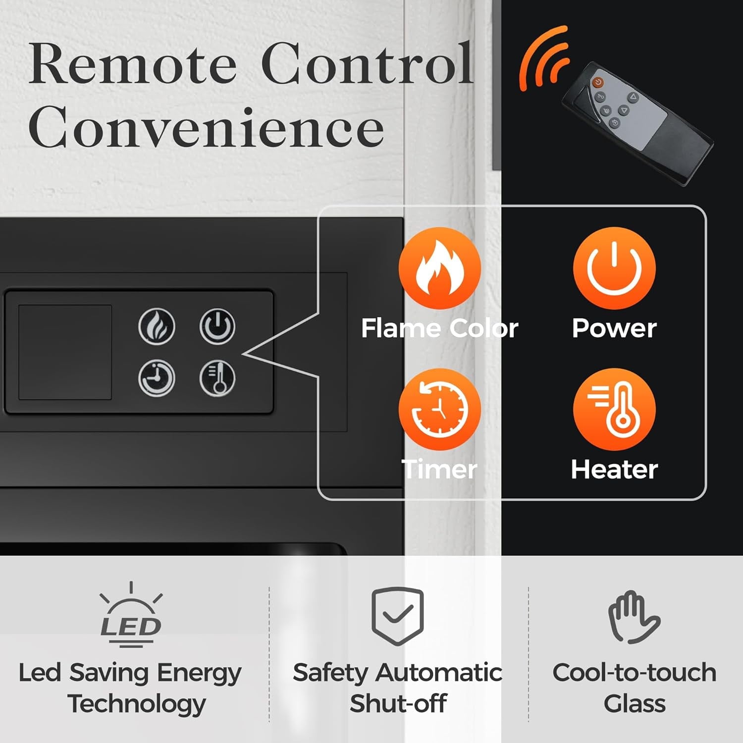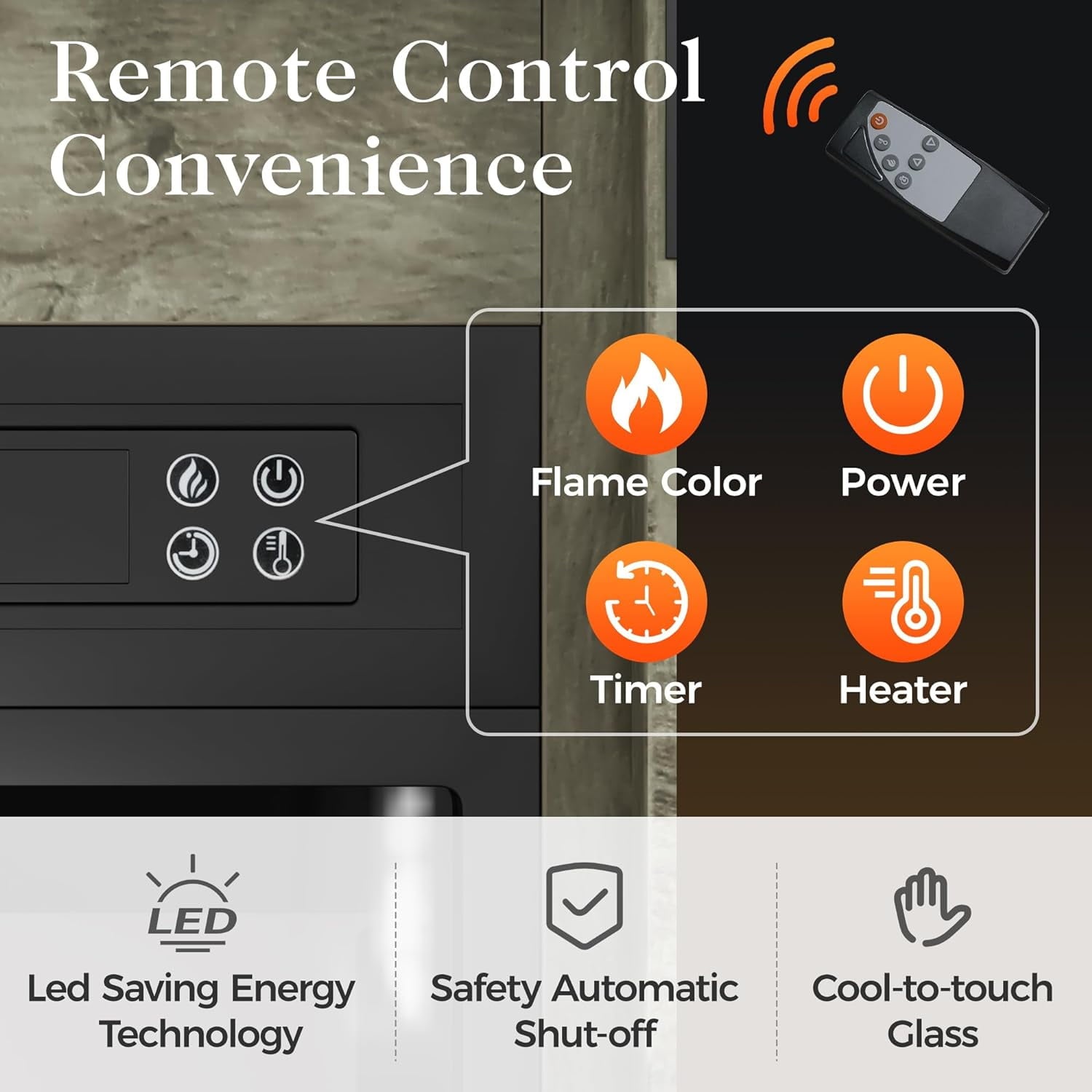- Customizable Flames and Adjustable Temperature: Our LED electric fireplace pumps out 5000 BTU, wrapping a 400 sq. ft. area in warmth. Enjoy 6 captivating flame hues, 3 brightness levels, and 22 temperature options that grant you full coziness control.