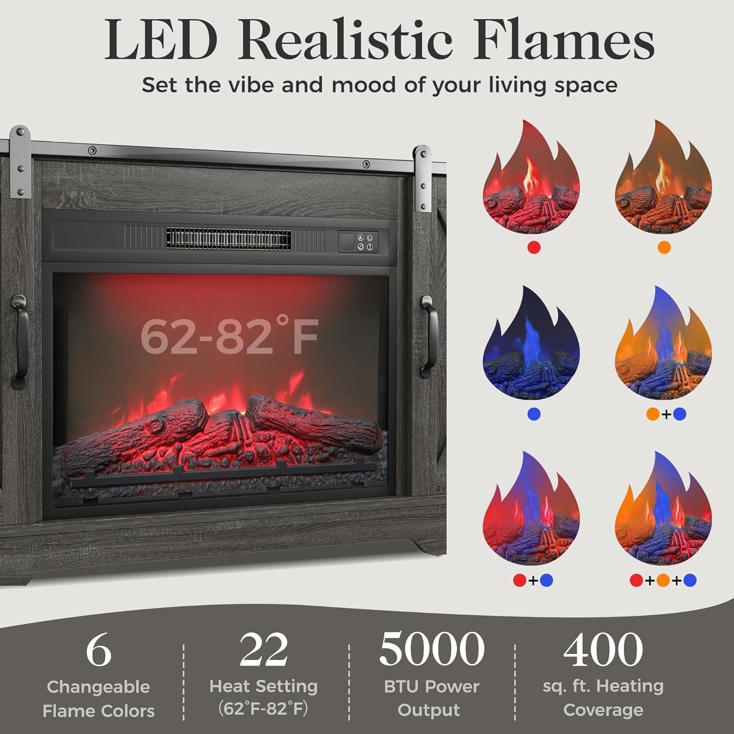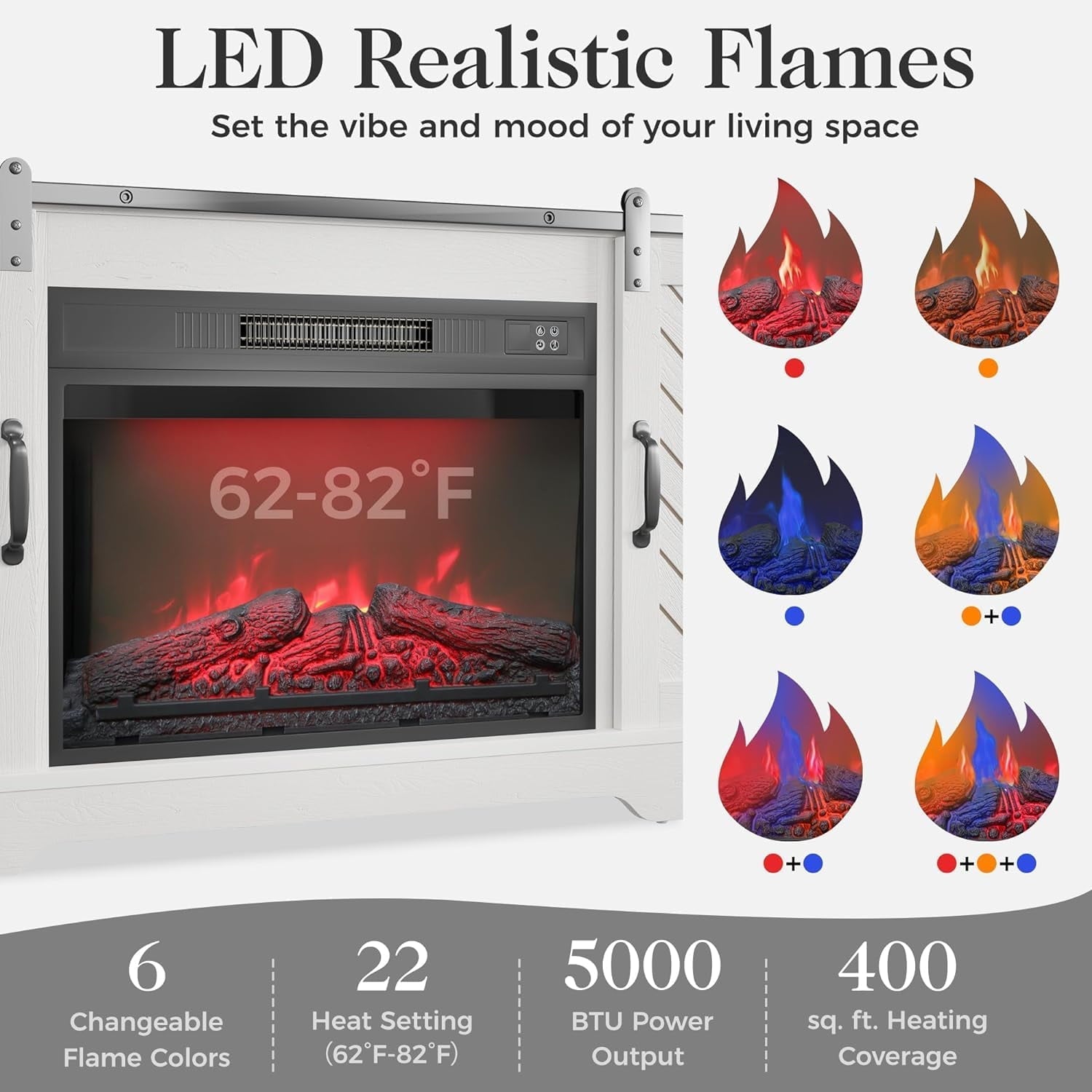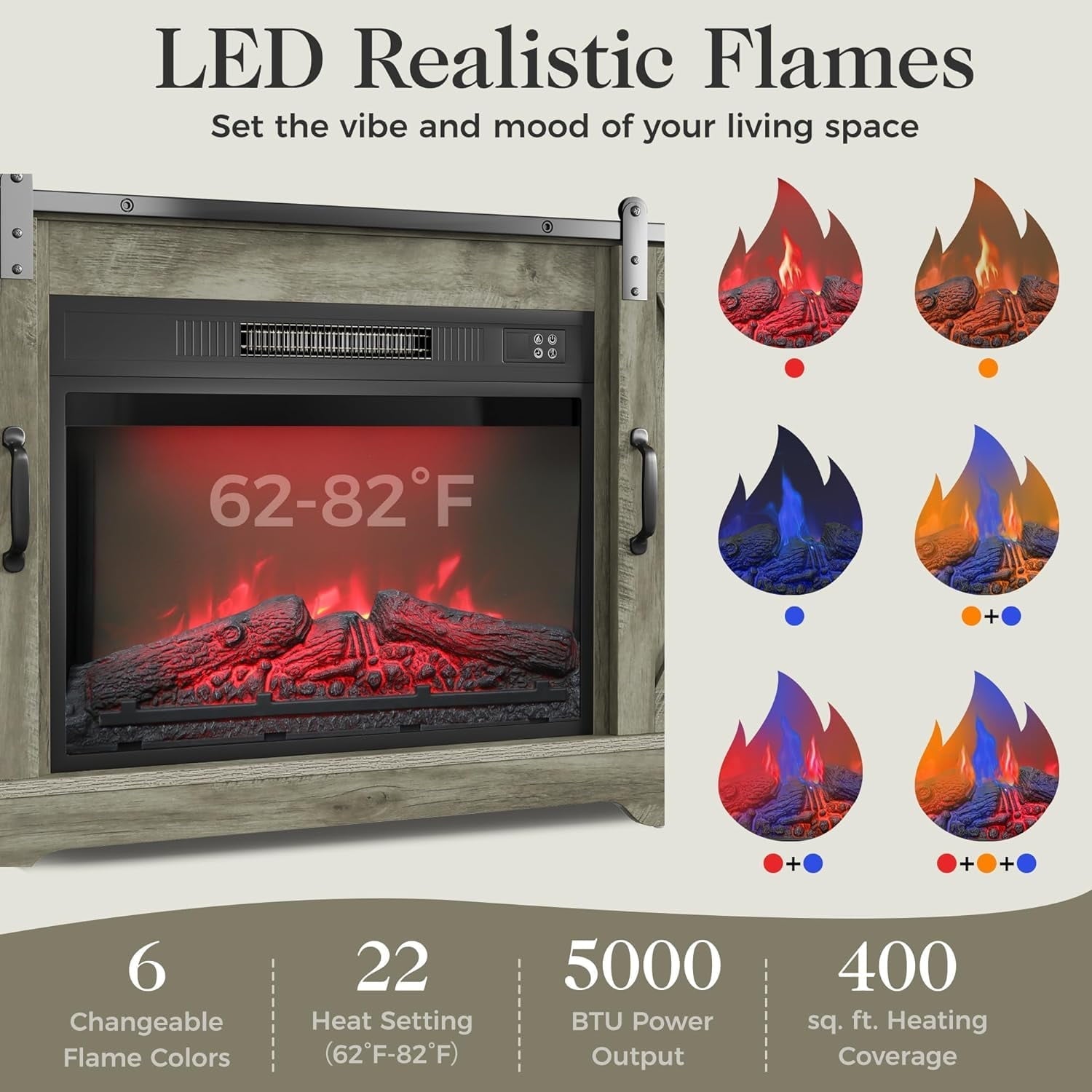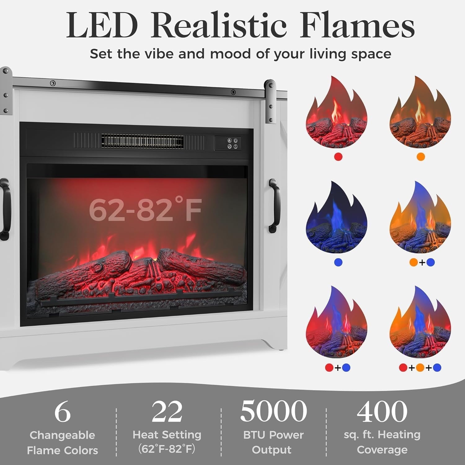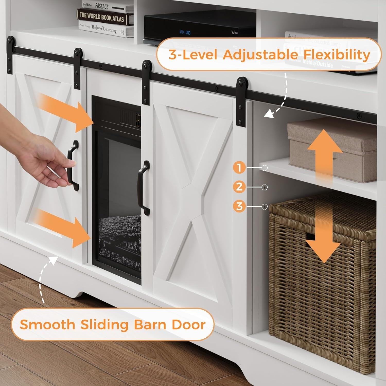 - Why Fireplace or TV Stand When You Can Have Both? : Imagine a cozy evening by the fireplace entertainment center. No mess, no wood chopping¡ªjust farmhouse elegance with sliding barn door and authentic wood textures, bathed in the warm flicker of firelight.