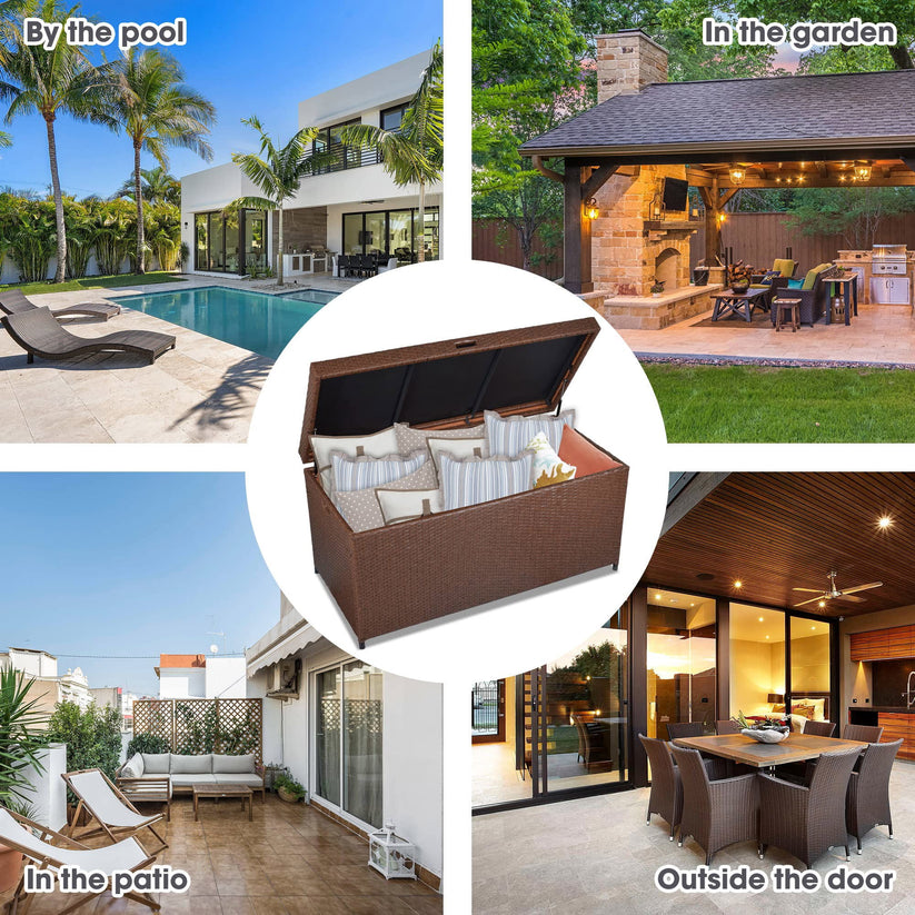 - 【Versatile】 Large and deep to hold all your favorite outdoor cushions, pillows, outdoor tools, gear, and toys all safe from the elements; Overall dimension: 52” (L) x 25” (W) x 25” (H)