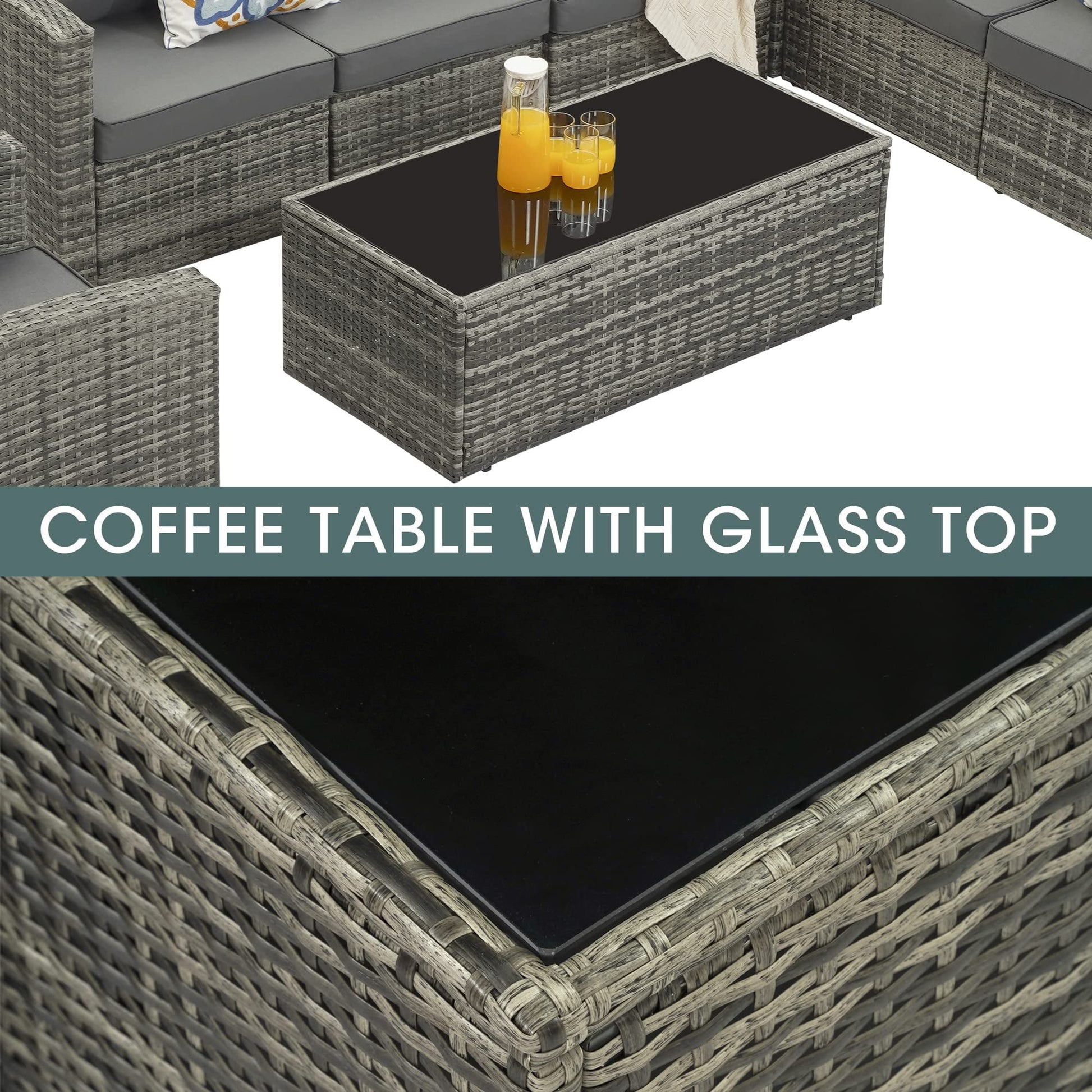 Would you like to enjoy a cup of coffee or take a break with your friends in an outdoor space? Our outdoor wicker furniture is perfect for you. The exquisite willow design is hand-woven with polyethylene resin thread, while the sturdy powder-coated frame ensures year-round use of the furniture. It is ideal for placing on your patio, porch, poolside, or sunroom. With a deep-seating design and supportive cushioning, it allows you to comfortably rest and relax for hours. The cushions are made of soft, all-weather olefin, which is waterproof and weather-resistant, and can maintain a long-lasting fashionable style. The fresh grey/beige/dark grey cushions not only add a vibrant look to your space, but also provide you with more comfort. This set provides four color options to meet your patio needs. Additionally, we also offer the option to purchase individual pieces, allowing you to easily expand your combination set.