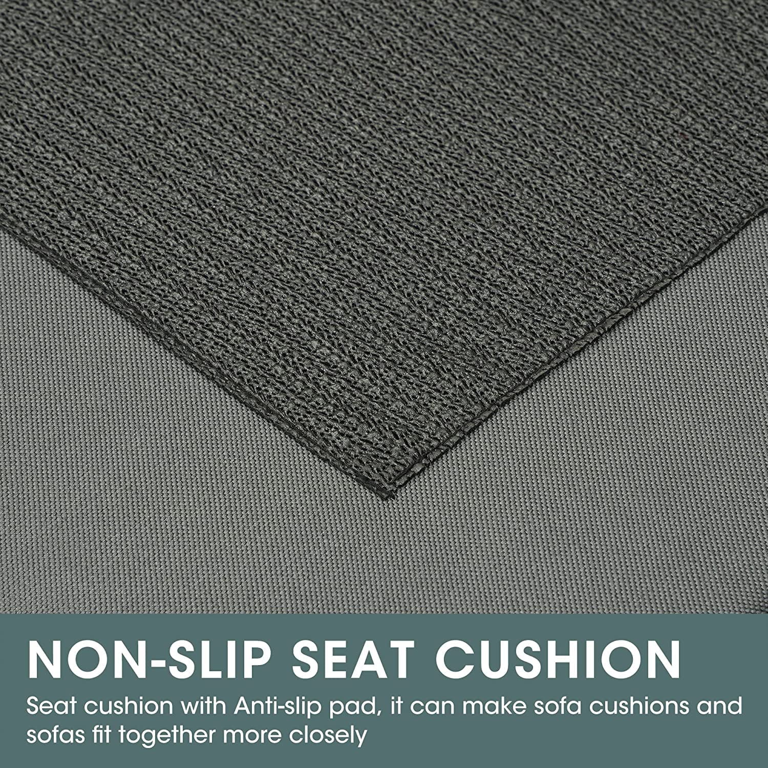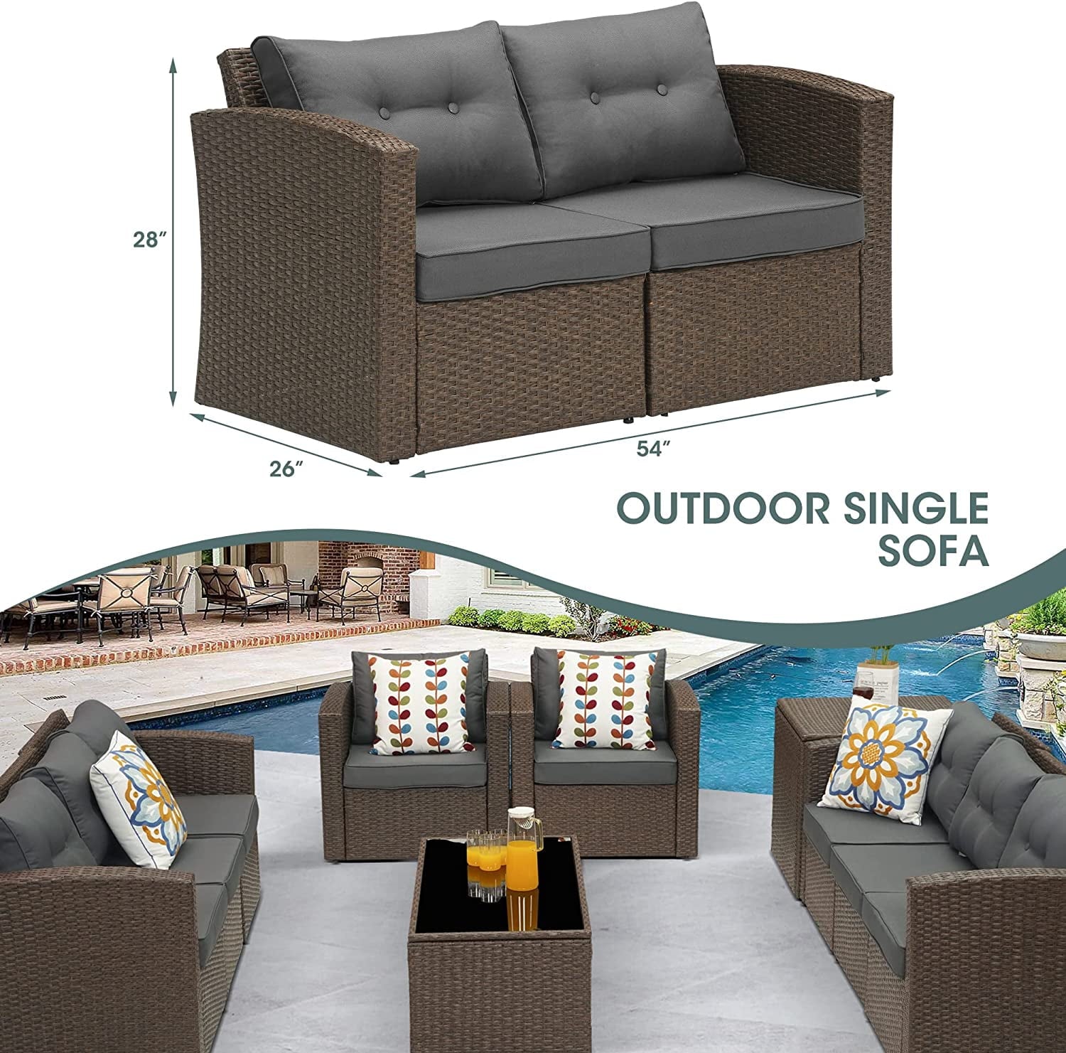 - COMFORT UPGRADE: Our outdoor furniture set is with seat cushions of 3.54 inches , comfort upgrade and have good resilience. And provide proper support, so you won't feel tired after sitting on it for a long time. The seat cushion is very large and wide, providing a lot of space, It can accommodate people of any size to sit on it. Moreover, our sofa is designed with 16" backrest. The design of bent backrest makes you more comfortable to lean on the sofa and enjoy leisure time.