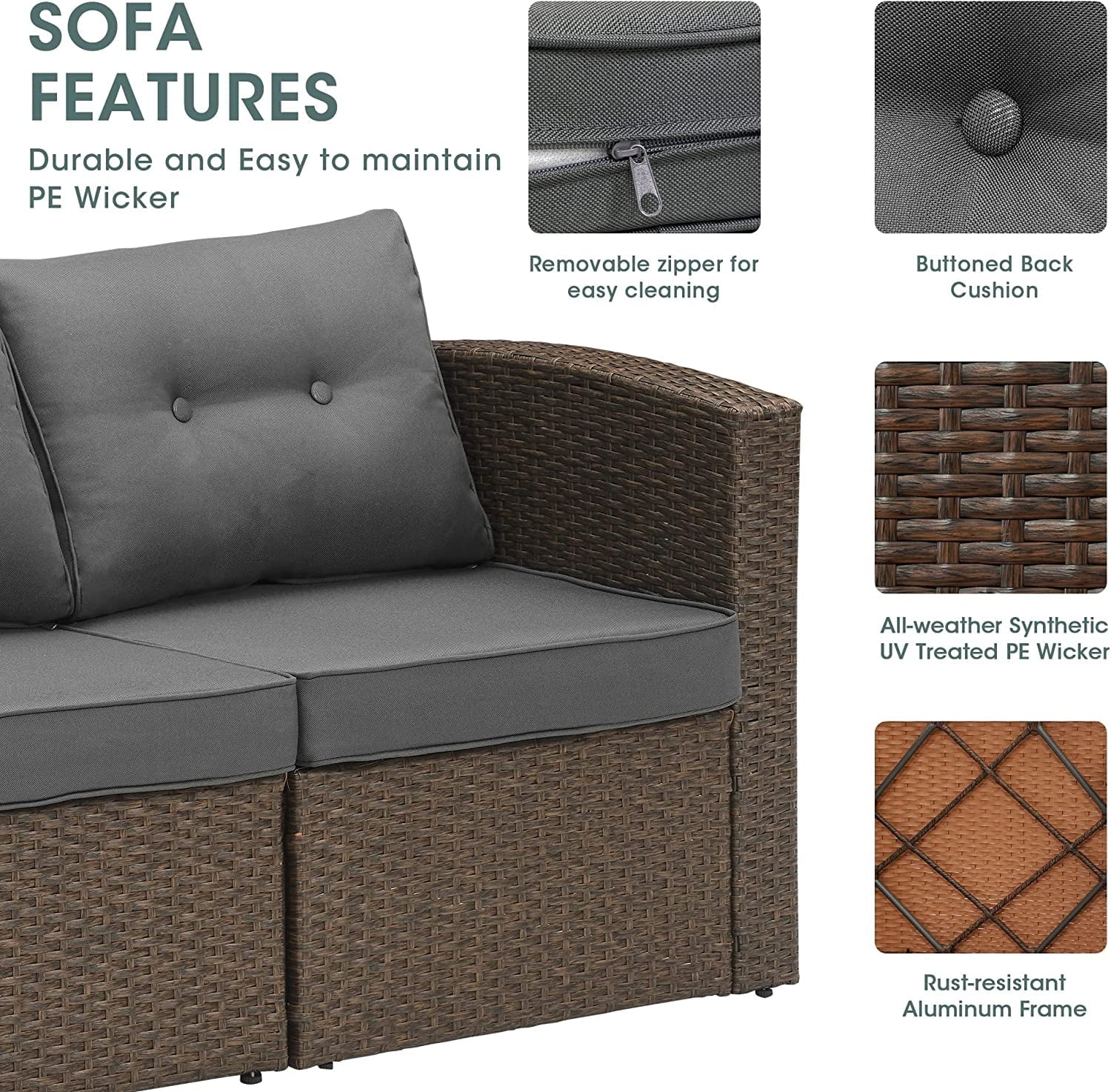 - LONG SERVICE LIFE&FIRM: The rattan of the sofa and the table body is hand-woven and is suitable for all kinds of weather. In addition, our patio sectional sofas are made from aluminum frame to prevent rust when be used outdoors for a long time and cushion cover is made of 250g short-fiber cloth, which is wear-resistant and durable.Longer service life, more stable in outdoor use.