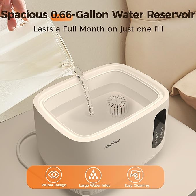 - Ample Tank & Enhanced Filtration: The large-capacity, visible water tank requires infrequent refilling (a full tank lasting about a month), and the easy-to-open design facilitates cleaning. Engineered with a filtration box structure using filter stones for deep purification.
