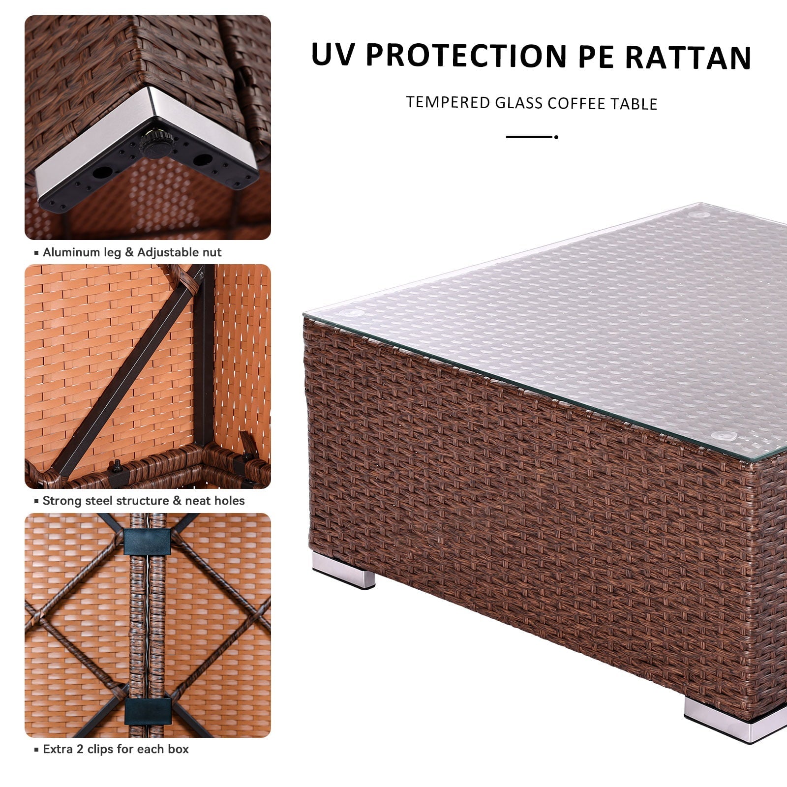 - LONG SERVICE LIFE&FIRM: The rattan of the sofa and the table body is hand-woven and is suitable for all kinds of weather. In addition, our patio sectional sofas are made from aluminum frame to prevent rust when be used outdoors for a long time and cushion cover is made of 250g short-fiber cloth, which is wear-resistant and durable.Longer service life, more stable in outdoor use.