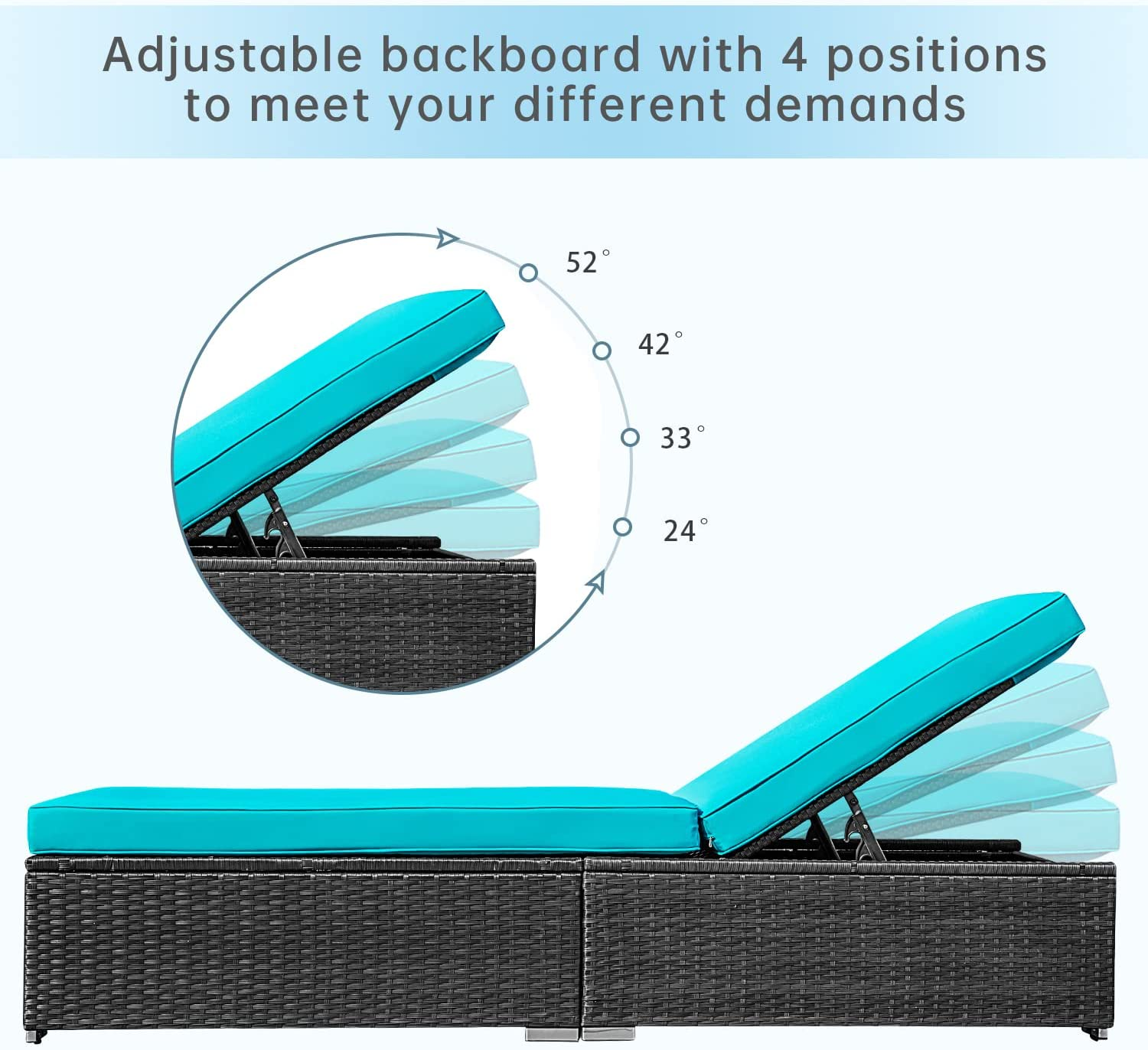 Sunvivi Wicker Patio Chaise Lounge Chair, Create the Patio of Your Dreams With Our Modular Furniture Sets, Black and Blue, PE Wicker