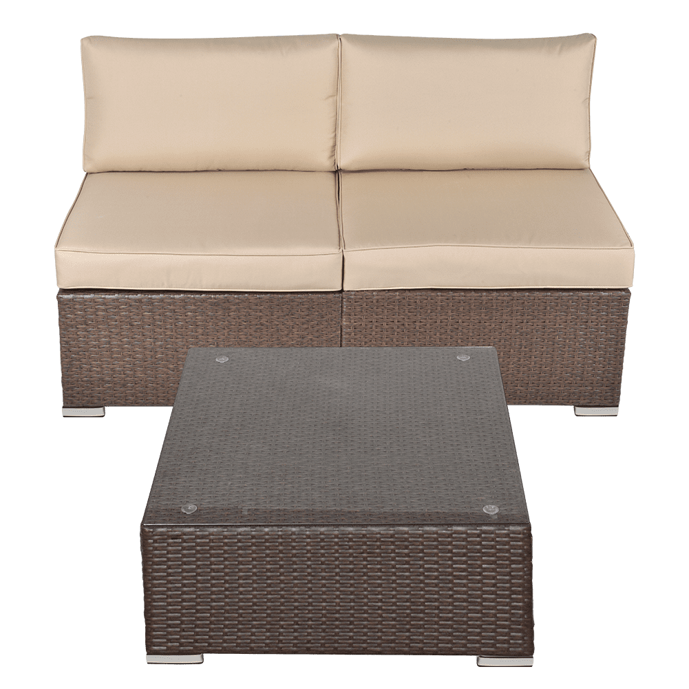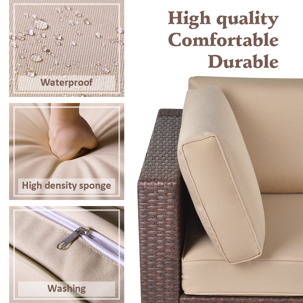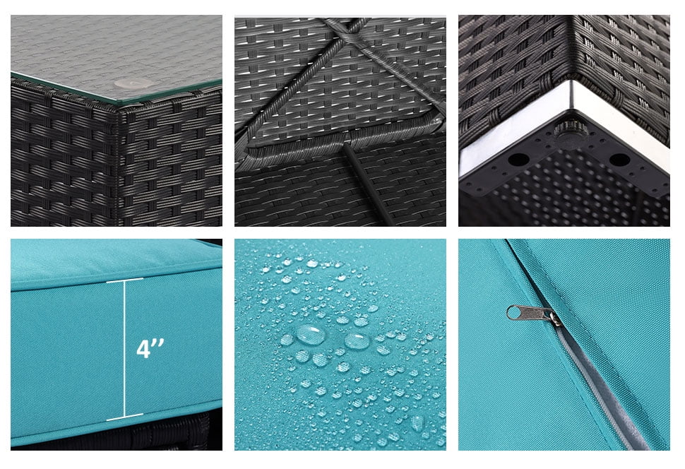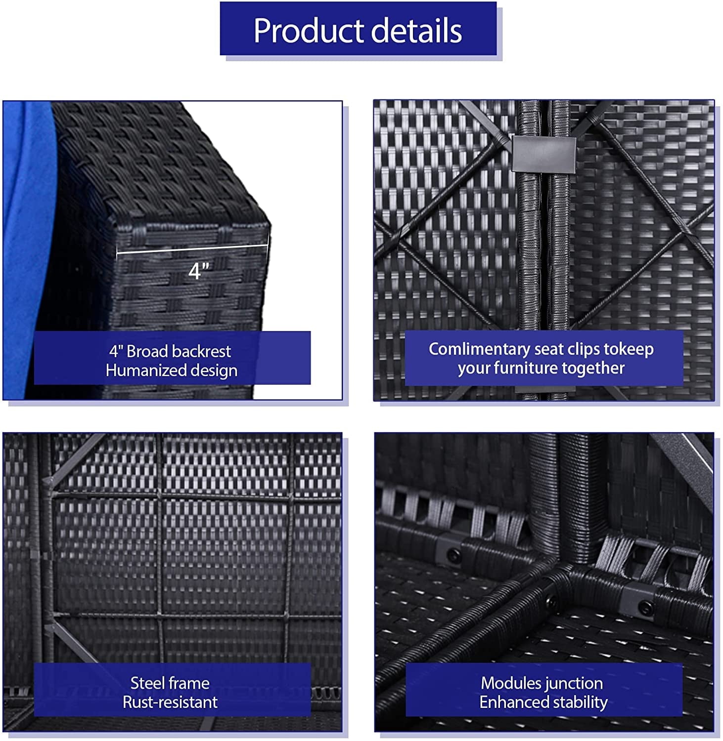 - LONG SERVICE LIFE&FIRM: The rattan of the sofa and the table body is hand-woven and is suitable for all kinds of weather. In addition, our patio sectional sofas are made from aluminum frame to prevent rust when be used outdoors for a long time and cushion cover is made of 250g short-fiber cloth, which is wear-resistant and durable.Longer service life, more stable in outdoor use.