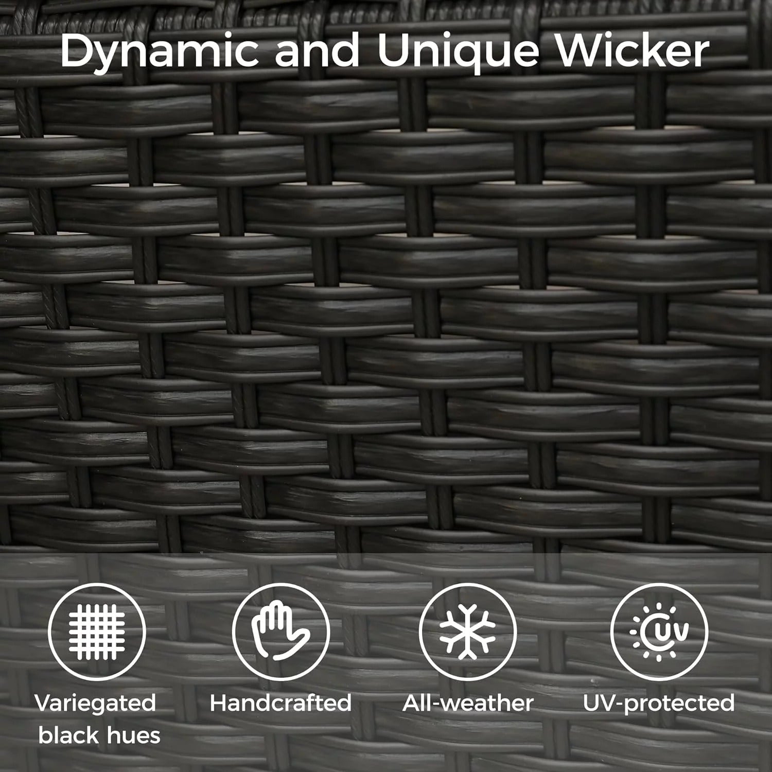 - Sturdy & Durable: This patio furniture is made of a strong frame and premium PE rattan, and is strong enough to withstand all weather variations. Each seat capacity is 280 lbs. You can easily use it outdoors for many years.