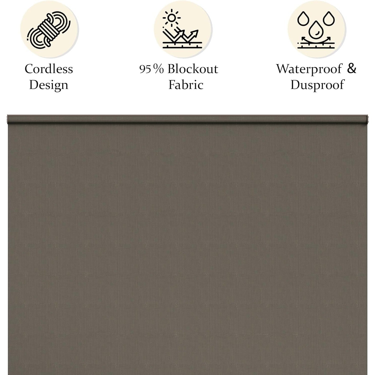 - ¡¾Durability Material & Cordless Design¡¿Our outdoor roll up blinds are made of 420GSM 70% PVC & 30% Polyester material and up to 95% UV block, breathable and weather resistant. Outdoor patio blinds shades can effectively shield you from the scorching sun, dust and rain, bringing you comfort, coolness and privacy protection. Using the rocker to roll up or down for your child's safety.