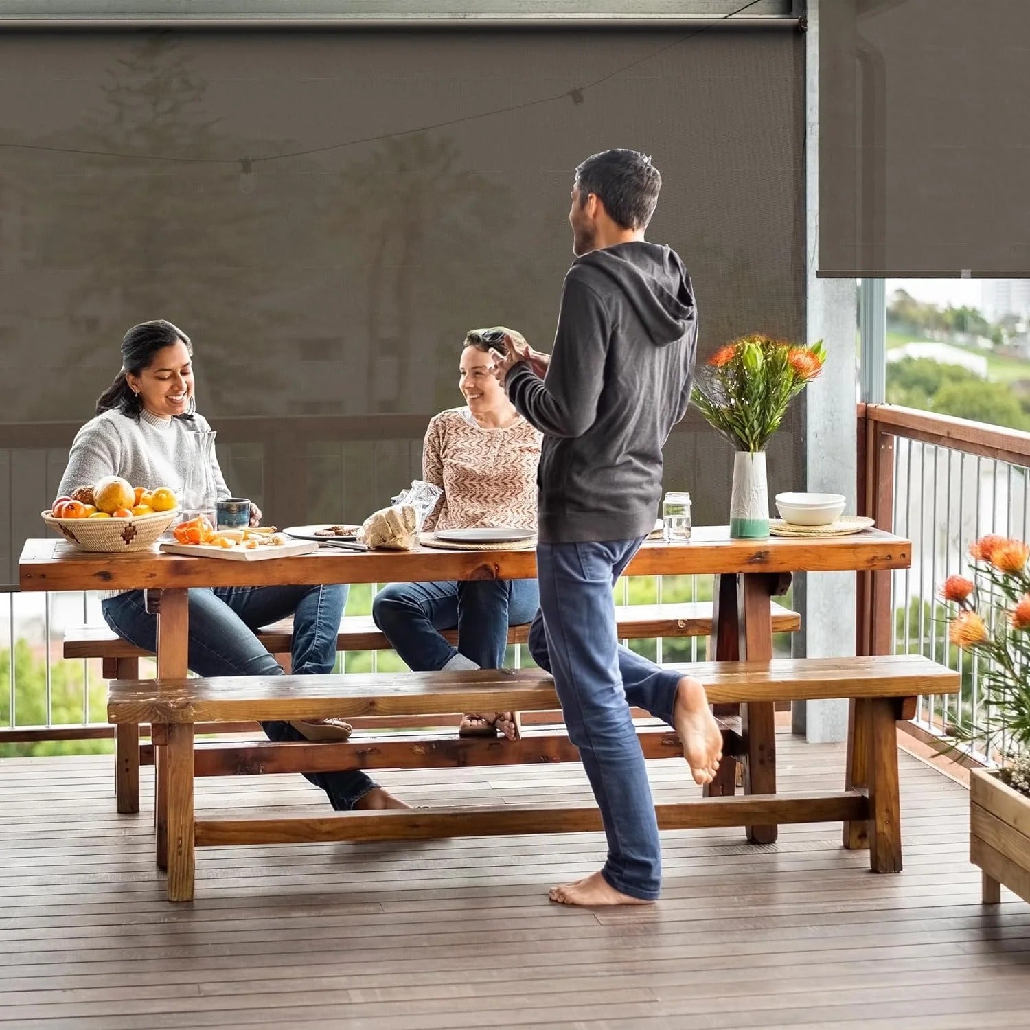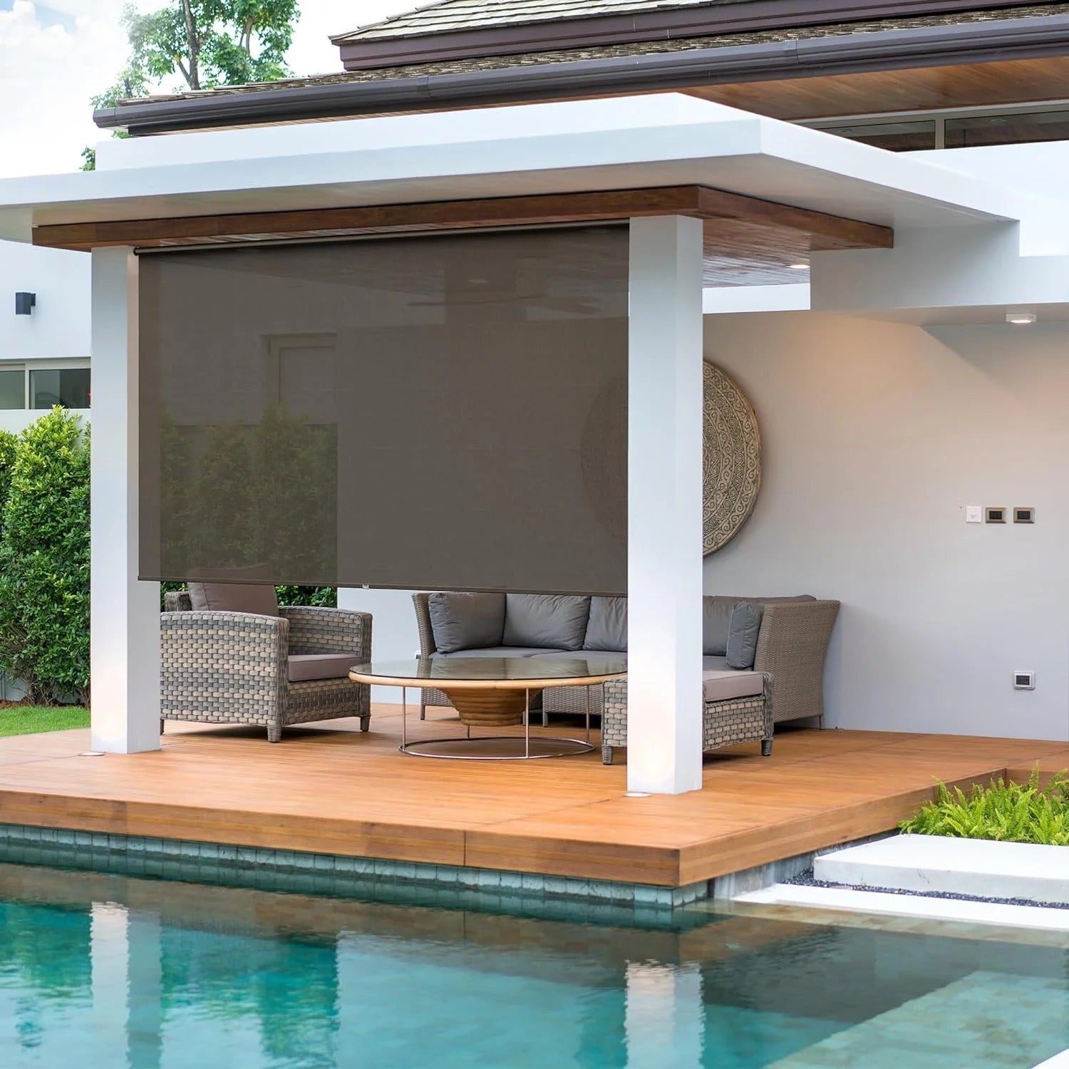 In the heat of summer, our roll shade cloth can provide you with a cool, comfortable, relaxing leisure area. Our roll up outdoor roller shades are made from breathable PVC & Polyester material with 95% UV protection - allow cooling air circulation. Keep your porch, patio, deck, pergola or other spaces cool during the heat of the day by our outdoor waterproof porch blinds.