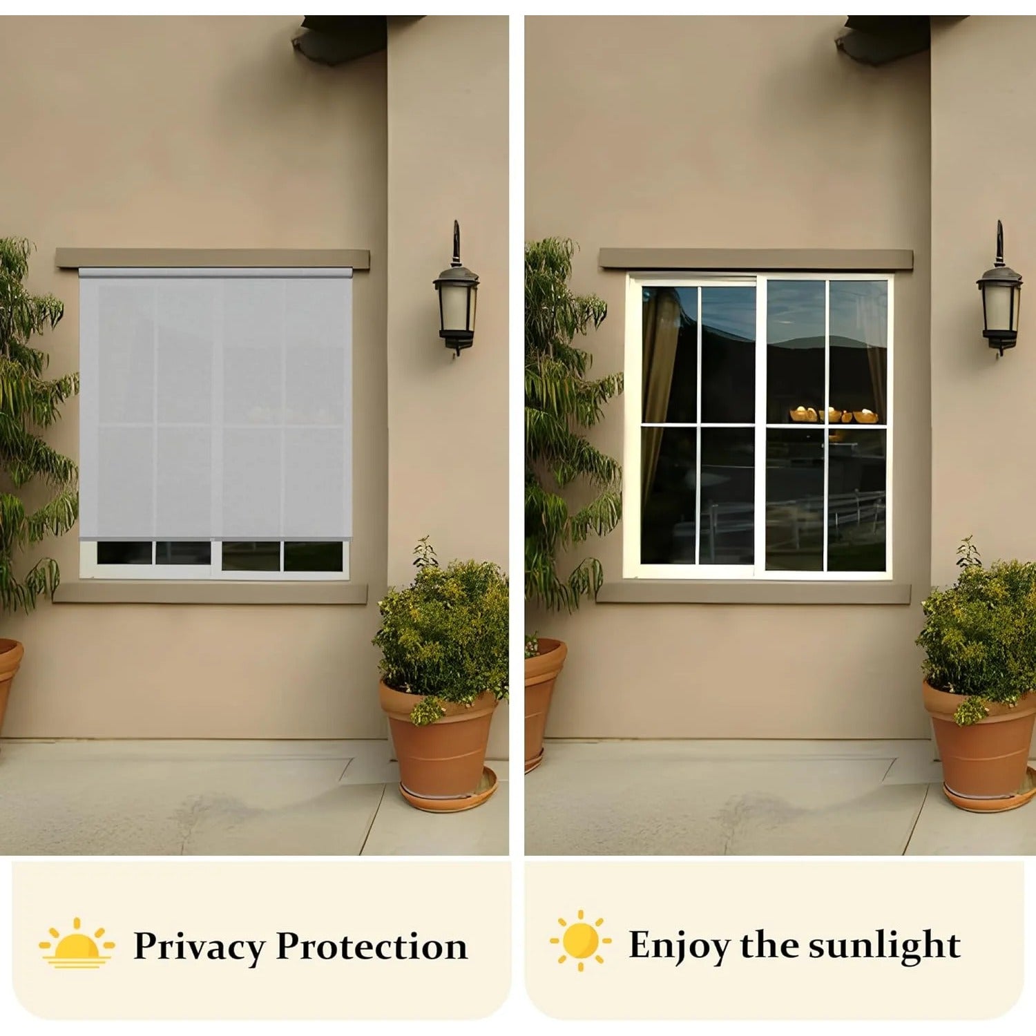 - ¡¾Professional Customer Service¡¿We are honored to provide you with quality exterior rollup shades and services. Our roller shade comes with 2 year warranty under normal usage and weather.If you have any problem with the outdoor blinds and shades, please contact us.