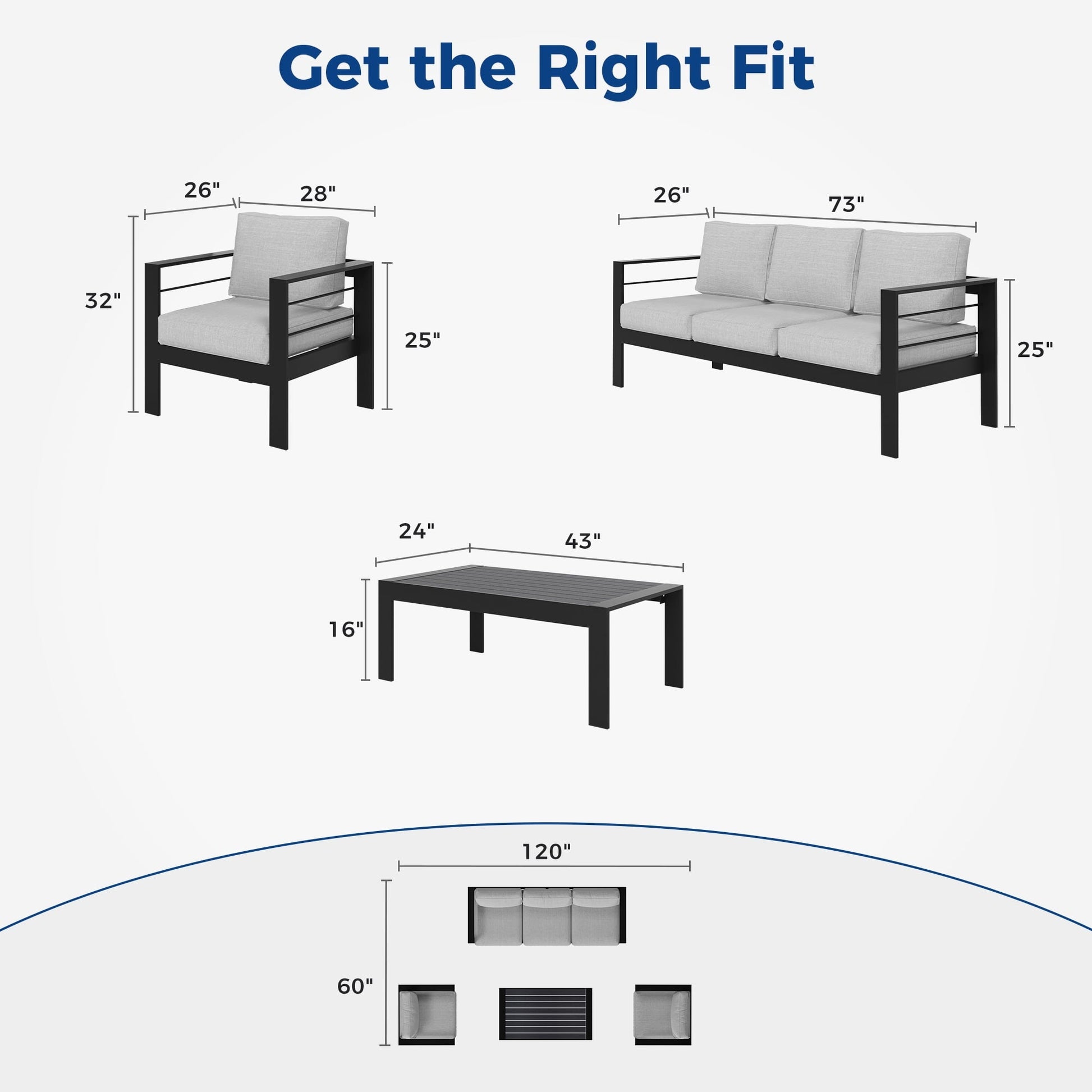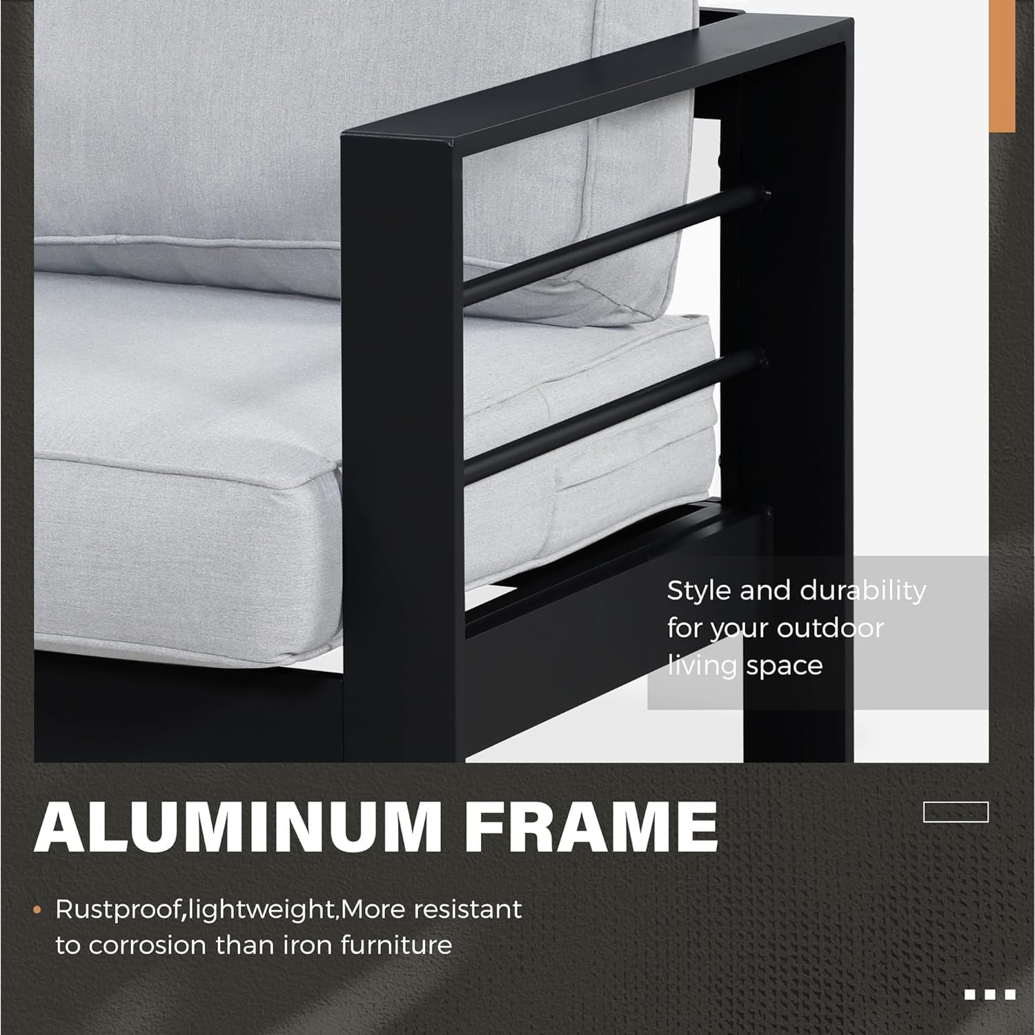 - ¡¾Premium All-Aluminum Frame¡¿Our modern patio furniture stands out with its upgraded all-aluminum construction, a material known for its durability and resistance to rust. The unique properties of aluminum ensure that your outdoor furniture will maintain its quality and appearance in all weather conditions.