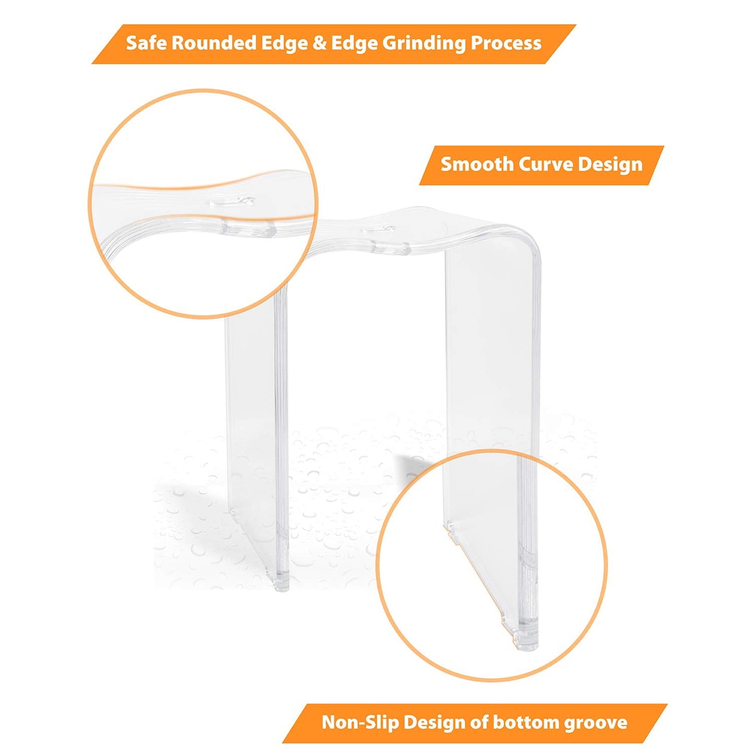 Superjoe Acrylic Shower Bench Seat Bathroom Shower Stool, Rounded Edge and Sleek Designed, 3/4" Thick, Weight Capacity 300 lbs, Clear