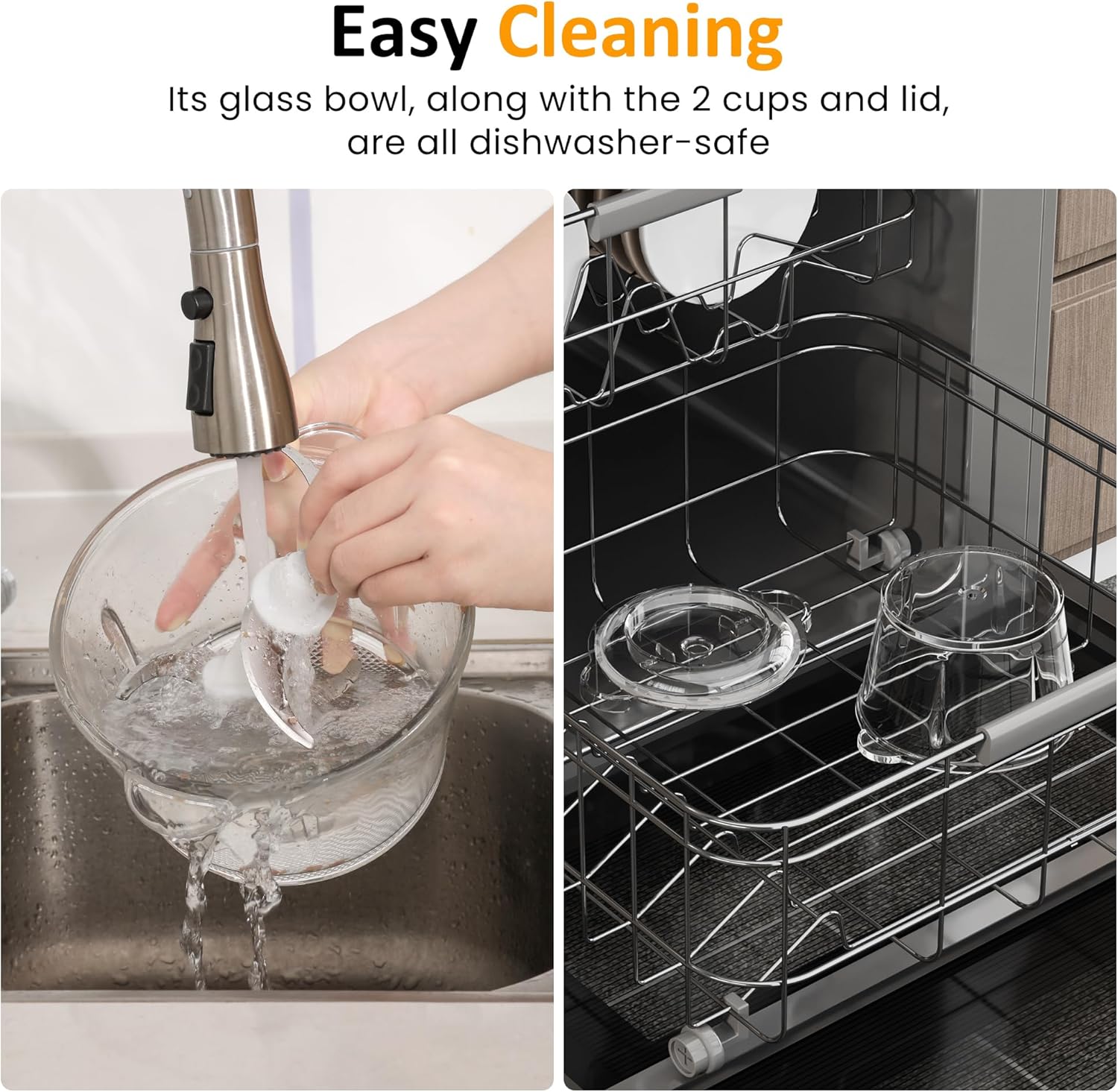 - 【Easy Cleaning】-Enjoy the convenience of effortless cleaning with our meat grinder. Its glass bowl, along with the 2 cups and lid, are all dishwasher-safe, freeing your hands for more important tasks. Spend less time on cleanup and more time creating. Embrace simplicity and ease with every use of our efficient and easy-to-maintain blender.