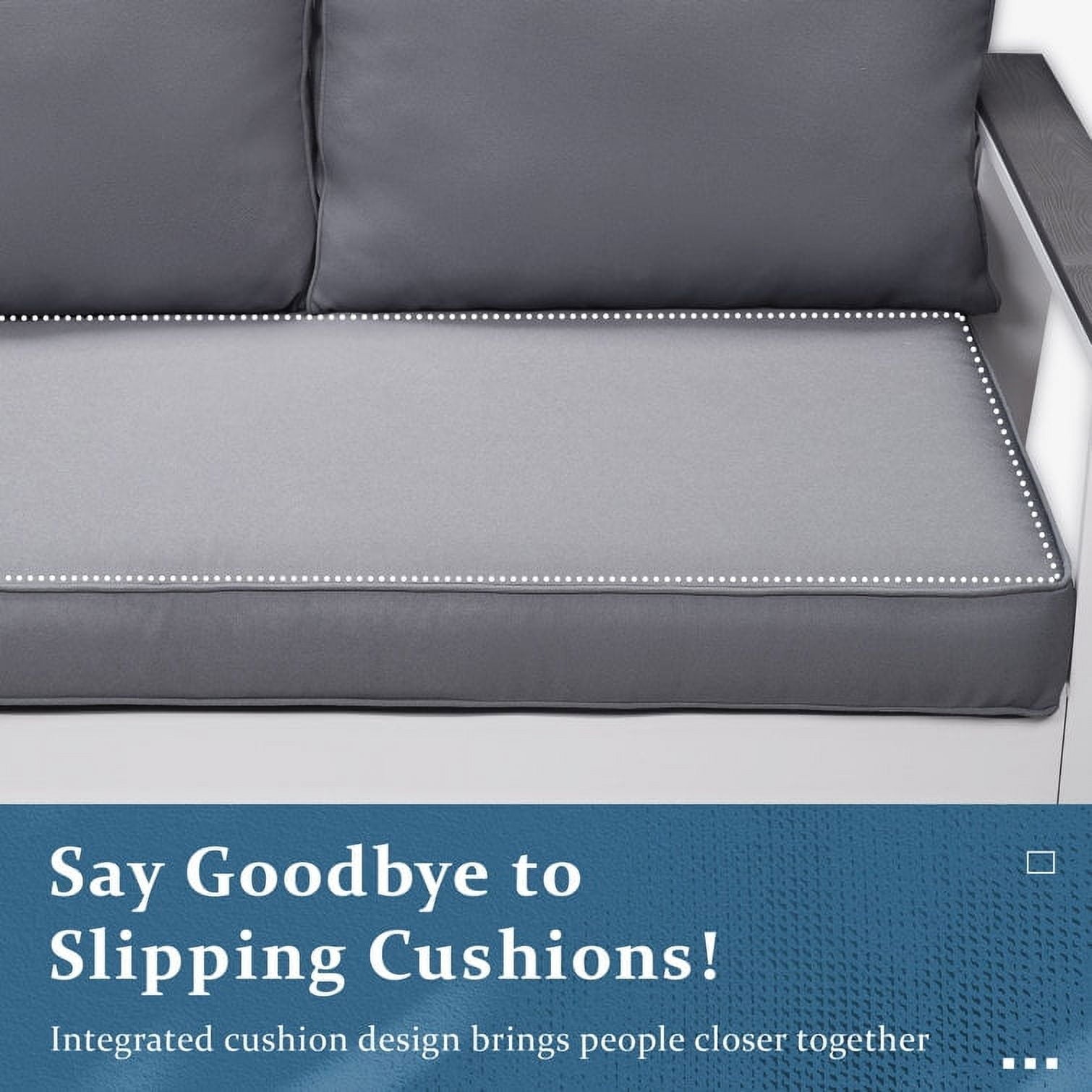 - ¡¾Bench Cushion with Uniform Support¡¿The cushions of the aluminum outdoor loveseat put an end to the annoying slip-and-slide dance, bring people together and create a warm atmosphere. Get cozy with your loved ones on these comfortable cushions.