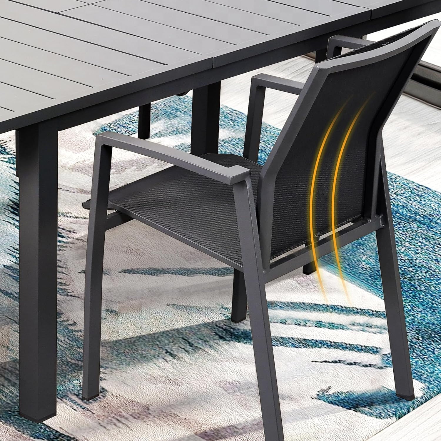 - Comfortable Texilene Mesh Chairs: Crafted with Texilene, a high-performance outdoor material, these chairs offer exceptional breathability, cooling, quick-drying, and waterproof qualities.
